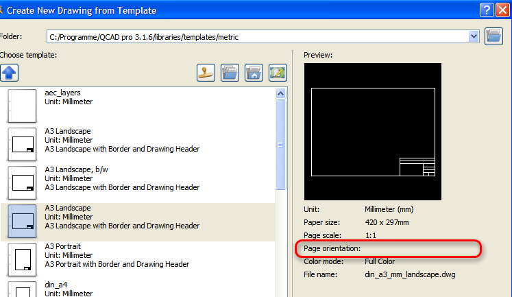 “Create New Drawing from Template” Browser can’t readout the Page orientation ...