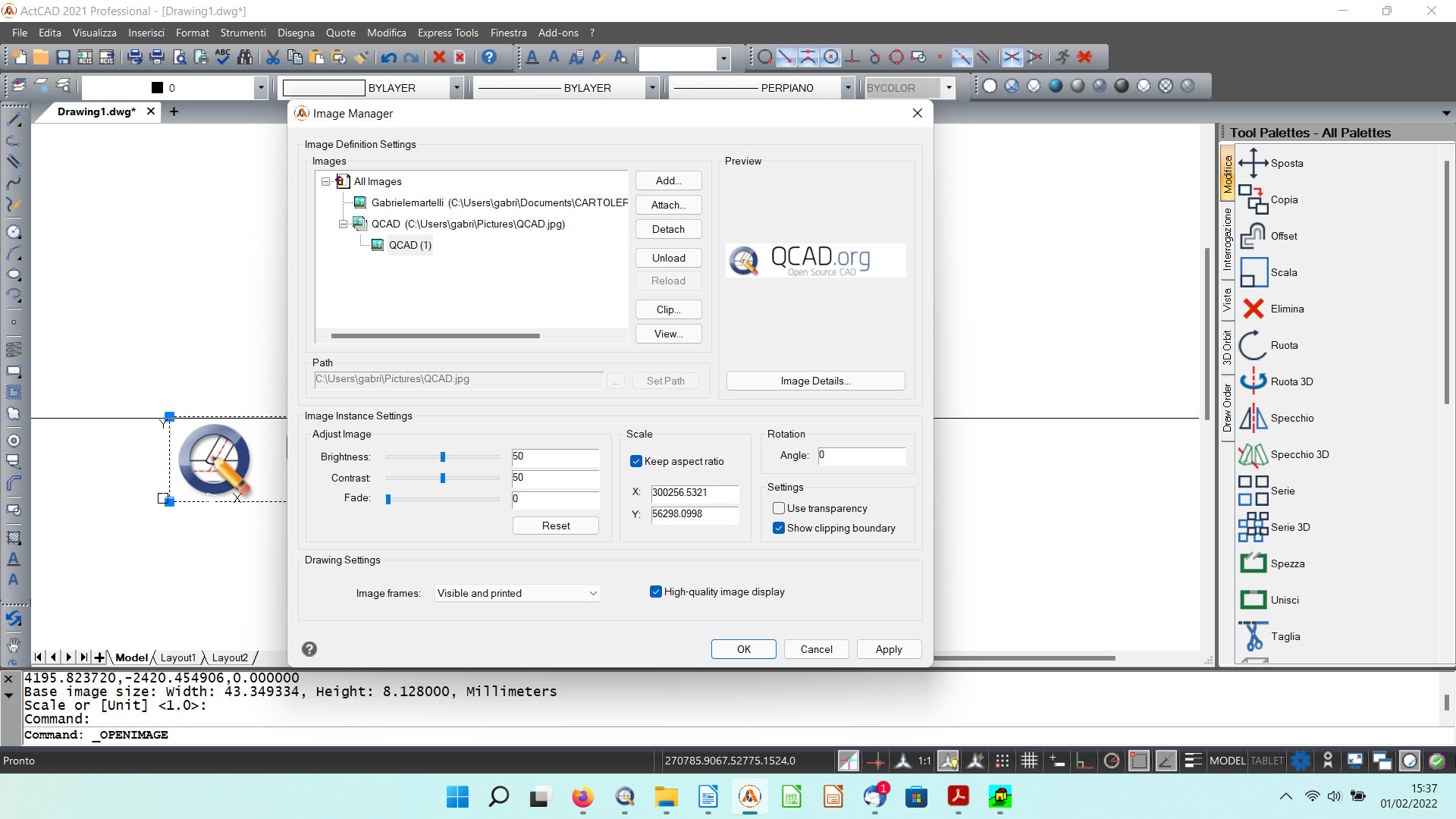 It might be useful to have the possibility to manage the references of the images contained within the drawing. A design could use recurring images, stored in a folder outside the one in which the design is located. Moving the drawing or folders (or changing the PC) will lose the folder references and the images are not displayed when the drawing is opened again.