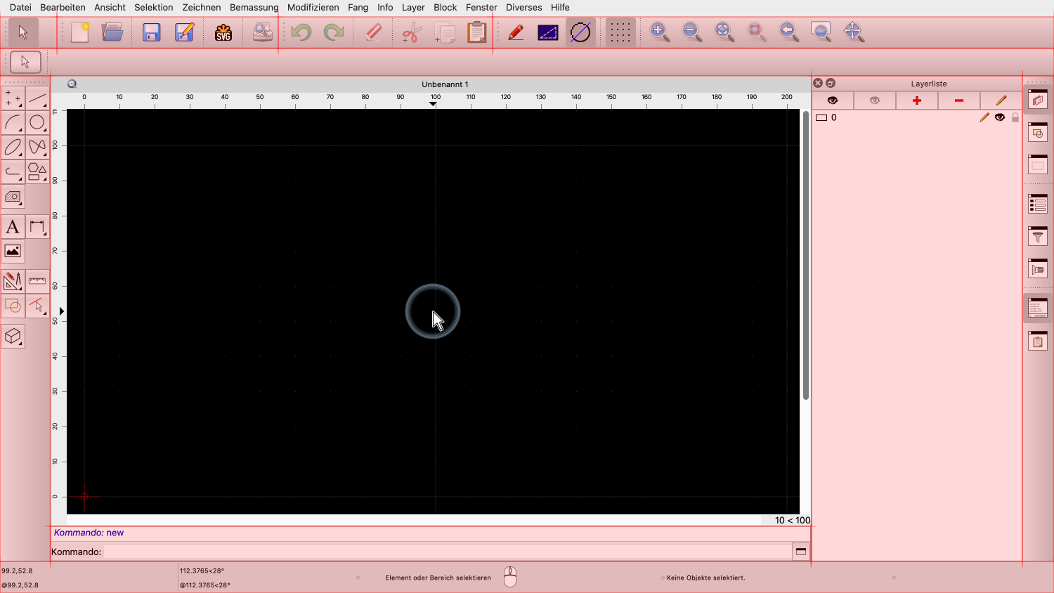 In diesem neutralen Zustand können wir die Zeichnung betrachten und einige grundlegende Änderungen wie das Auswählen und Löschen von Elementen vornehmen.