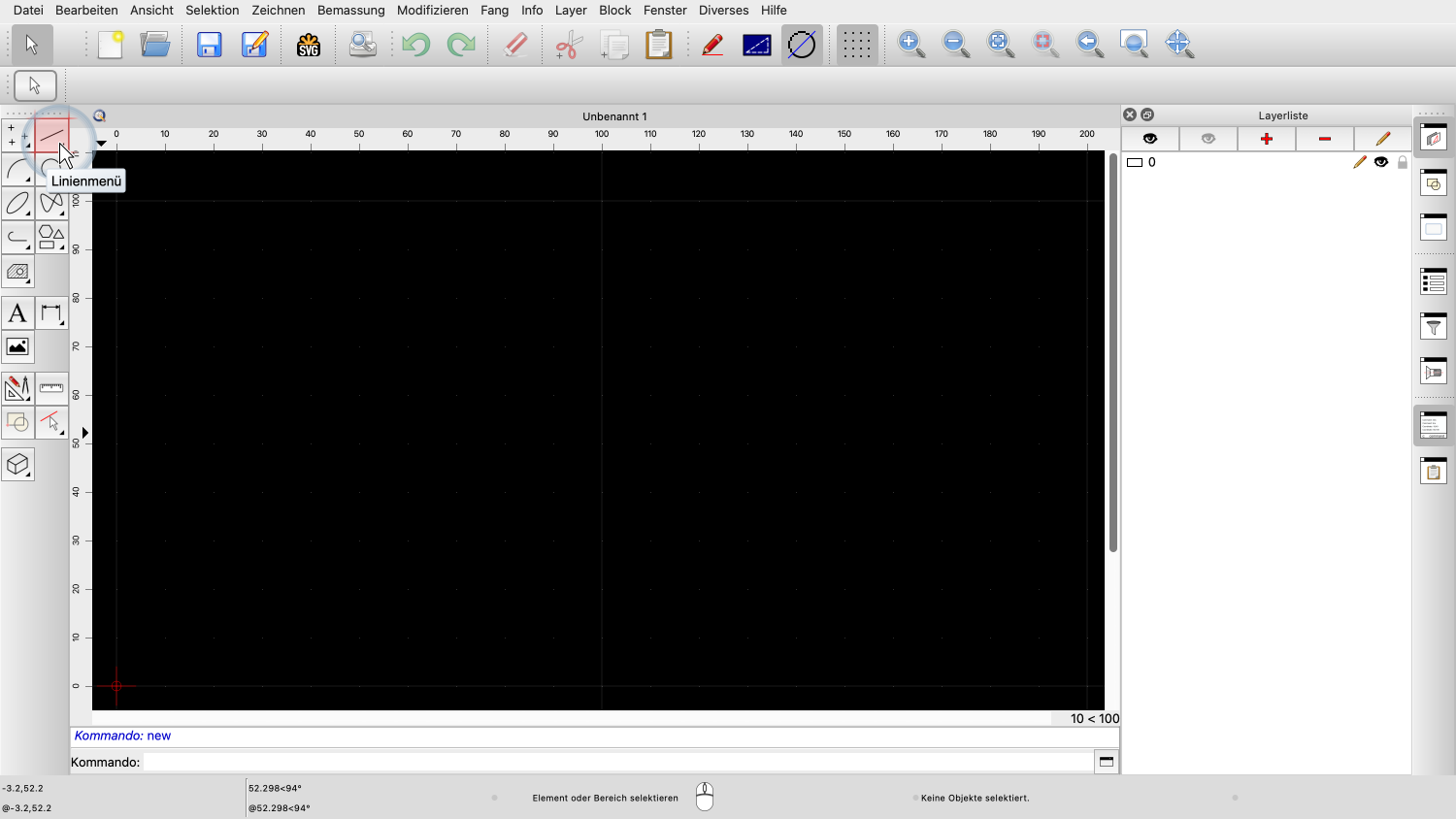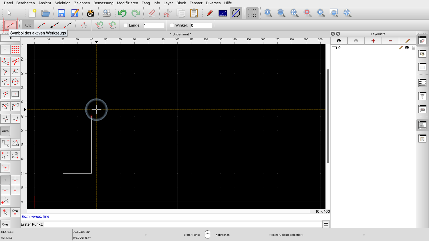 Der erste Klick in den Zeichenbereich setzt den Startpunkt der ersten Linie.