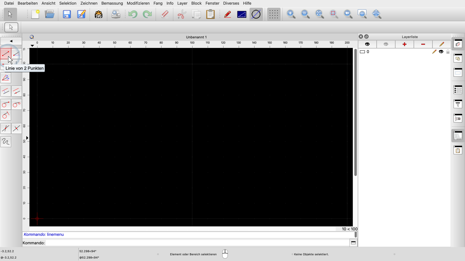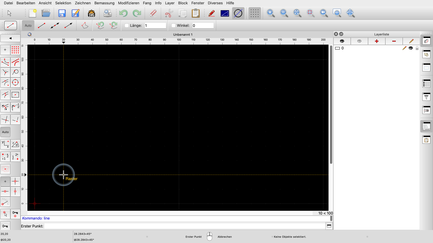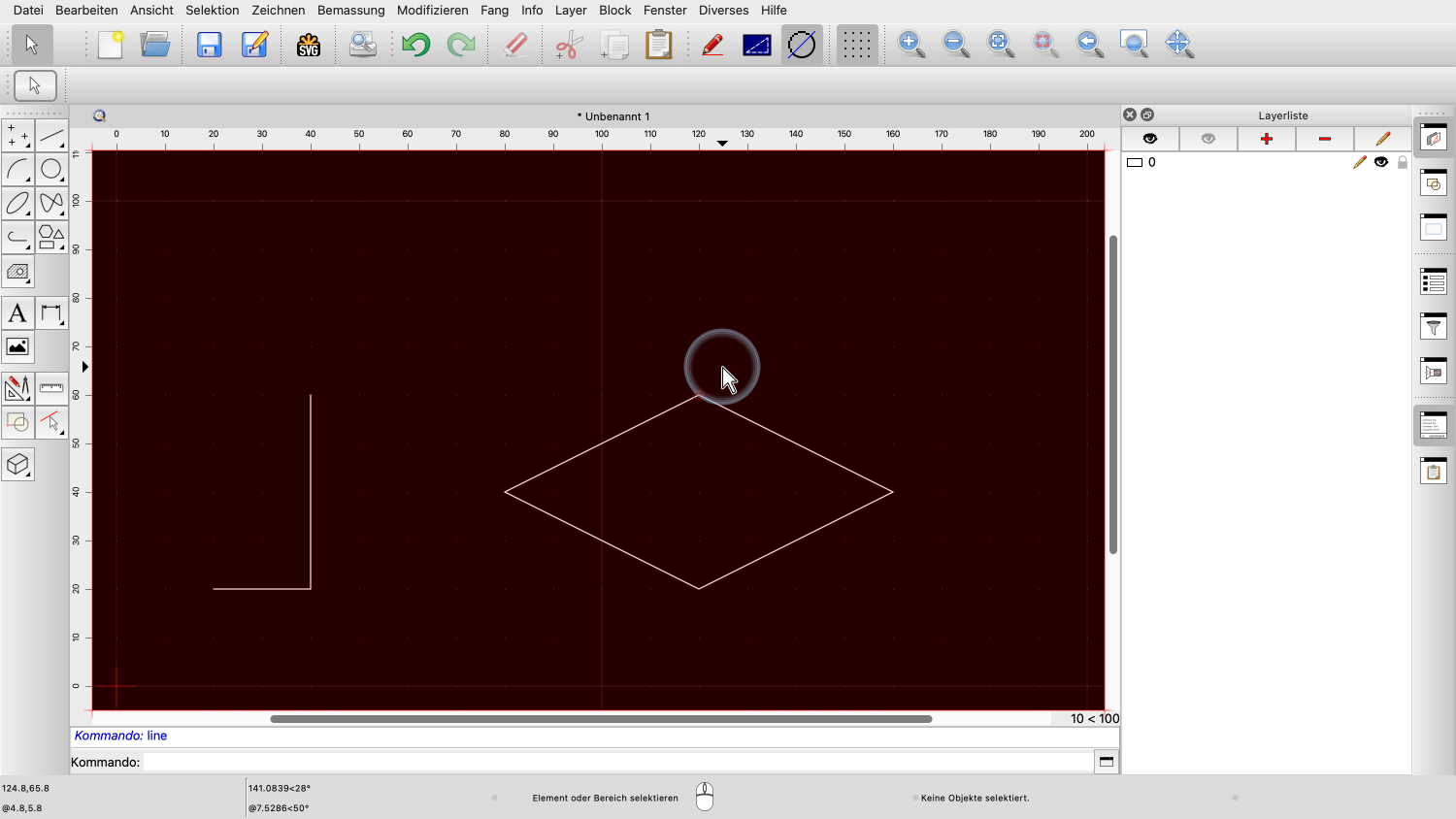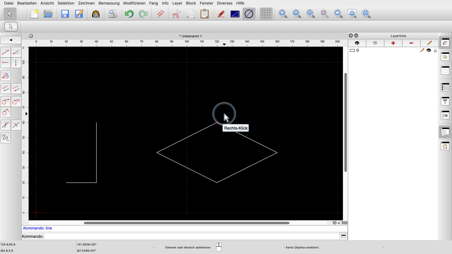 Als wir die rechte Maustaste gedrückt haben, haben wir QCAD mitgeteilt, dass wir das Zeichnen von verbundenen Linien beenden wollen.