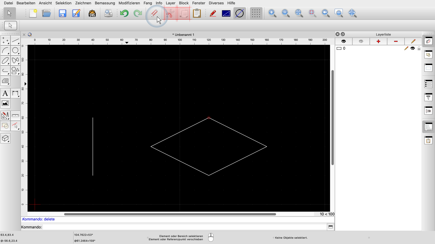 Nun wollen wir sehen, wie wir eine Linie aus der Zeichnung löschen können.
