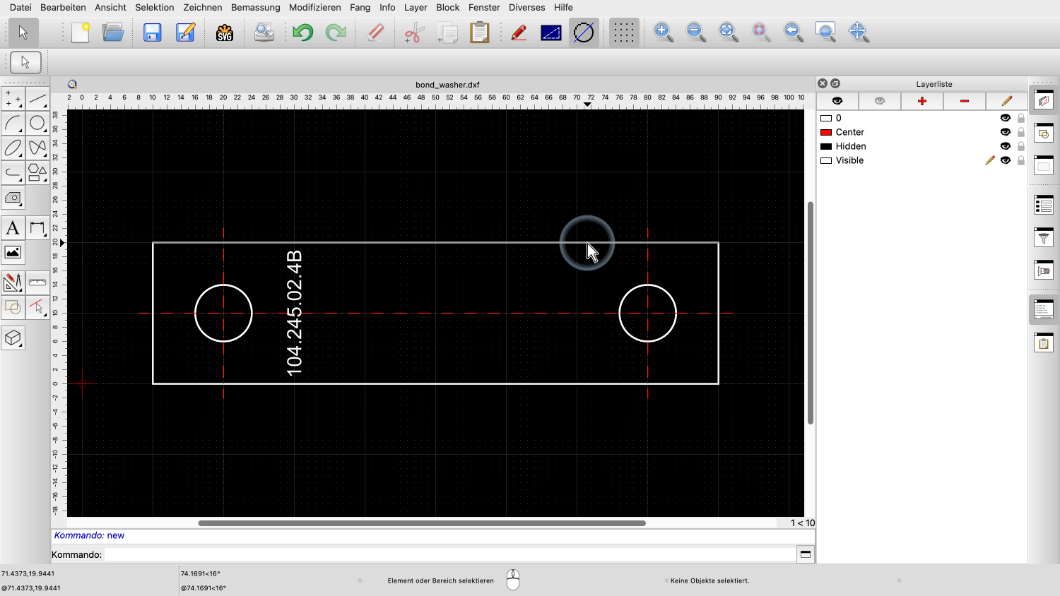 Die Mittellinie und die beiden Kreise befinden sich jetzt in der Zwischenablage von QCAD.