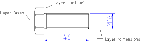 3 CAD alapfogalmakEnnek a fejezetnek az a célja, hogy gyors betekintést nyújtson a CAD rendszerekbe. Ha már dolgozott CAD programokkal, átugorhatja ezt a részt. Az itt megemlített alapfogalmakat később részletesen is megismerheti. EntitásokAz entitások a CAD rendszerek grafikus alapegységei. A tipikus entitások általában: pontok, vonalak, körök és ellipszisek. A műszaki rajzok összetett entitásai a poligonok, szövegek, méretháló, kitöltő minták és spline közelítések. TulajdonságokMinden entitás rendelkezik bizonyos jellemzőkkel, mint a színe, vonalának stílusa és vastagsága. FóliákA számítógéppel támogatott műszaki rajzkészítés egyik alapelve a rajz fóliákra bontása. A rajz minden eleme pontosan egy fólián lehet, de minden fólia számos elemet tartalmazhat. Általában az azonos tulajdonságú, vagy 'funkciójú' elemek kerülhetnek azonos fóliára. Például érdemes minden tengelyt a 'tengelyek' feliratú fóliára tenni (1 ábra). A fóliáknak lehetnek tulajdonságaik (szín, vonalvastagság, vonal stílusa). Minden entitás (elem) rendelkezhet saját tulajdonságokkal, vagy örökölheti azokat a fóliától, amelyre helyezte. Ez utóbbi esetben például egyszerre változtathatja meg az összes tengely színét, ha a tengelyek fólia színén változtat. A kézi szerkesztés során is hasonló módon dolgoznak. Az épületek szerkezeti elemei, elektromos hálózatai, szellőző rendszerei külön átlátszó papírra vagy fóliára készülnek. Ezek egymásra helyezve adják a végleges teljes rajzot.