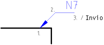 I riferimenti o indicazioni sono frecce che di solito puntano da un'entità testo verso un'altra entità come mostrato in Figura 44. Nell'esempio, l'entità testo “N7” indica una caratteristica di una superficie attraverso una freccia di riferimento.