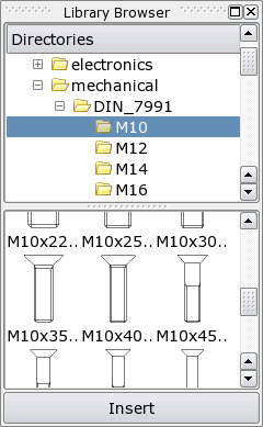 Вы можете легко расширить библиотеку частей QCad, сохраняя каждый чертёж в директории, названной 'library' внутри директории QCad. Чертежи библиотеки частей сохранены в том же формате, как и любые другие чертежи (DXF). Чертежи библиотеки частей не должны содержать блоков. Когда часть вставляется в чертёж QCad, блок автоматически создаётся для всей части.