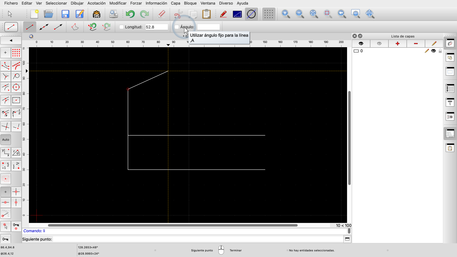 Volvemos a echar un vistazo a la herramienta de líneas, ya que suele ser una de las más utilizadas en QCAD.