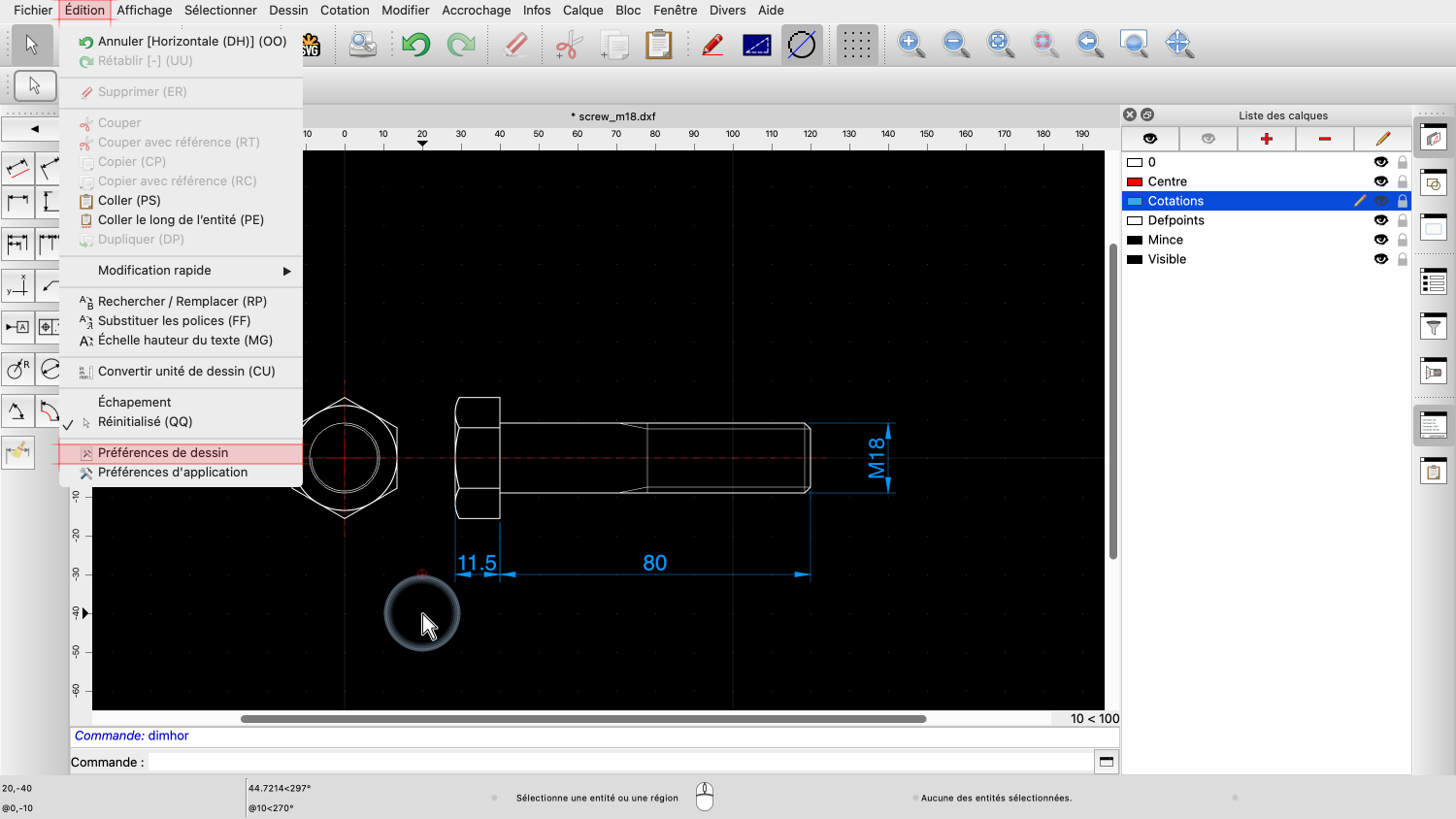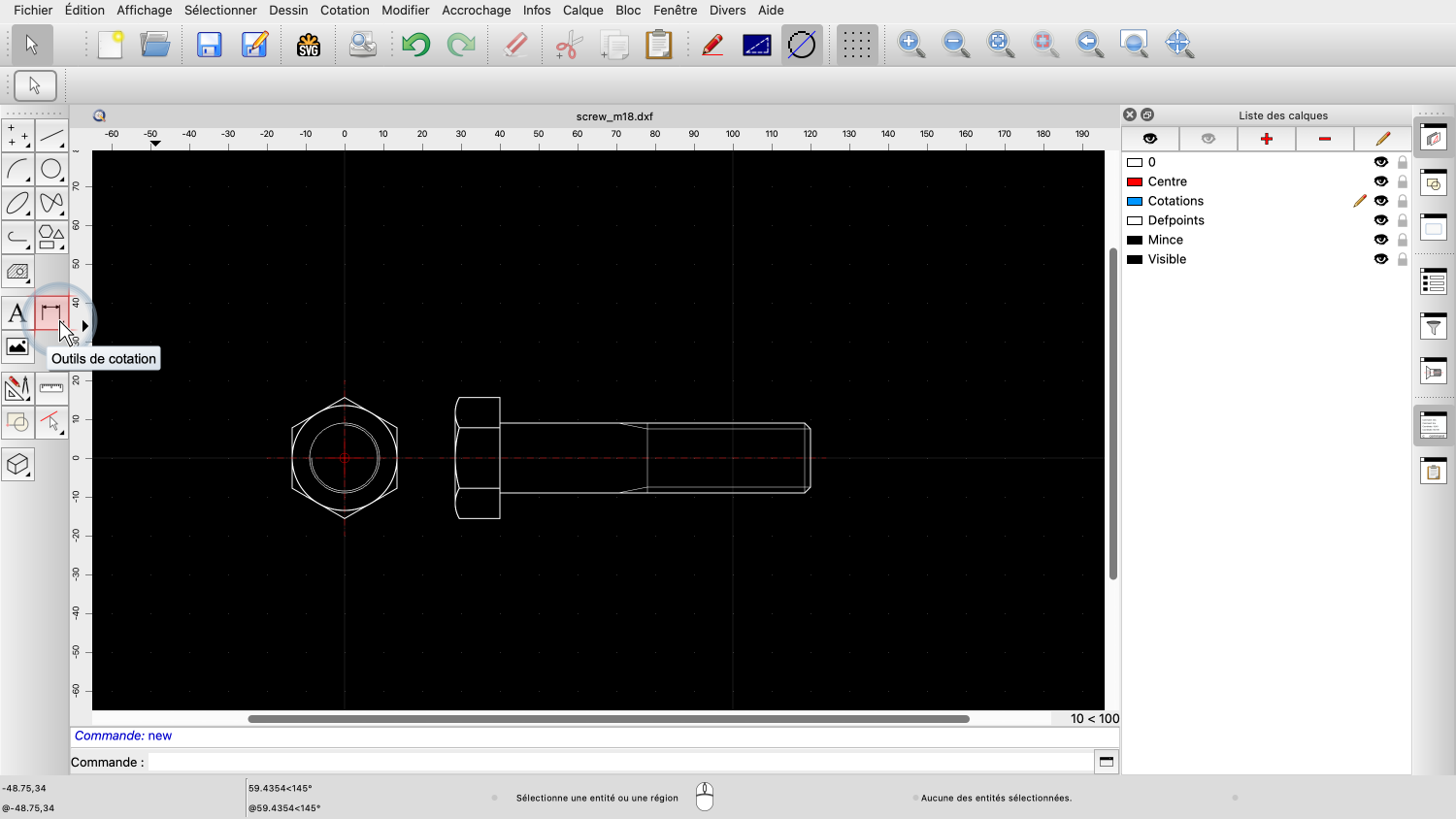 Ici, nous utilisons le calque "Cotations" pour toutes nos entités de cotation.
