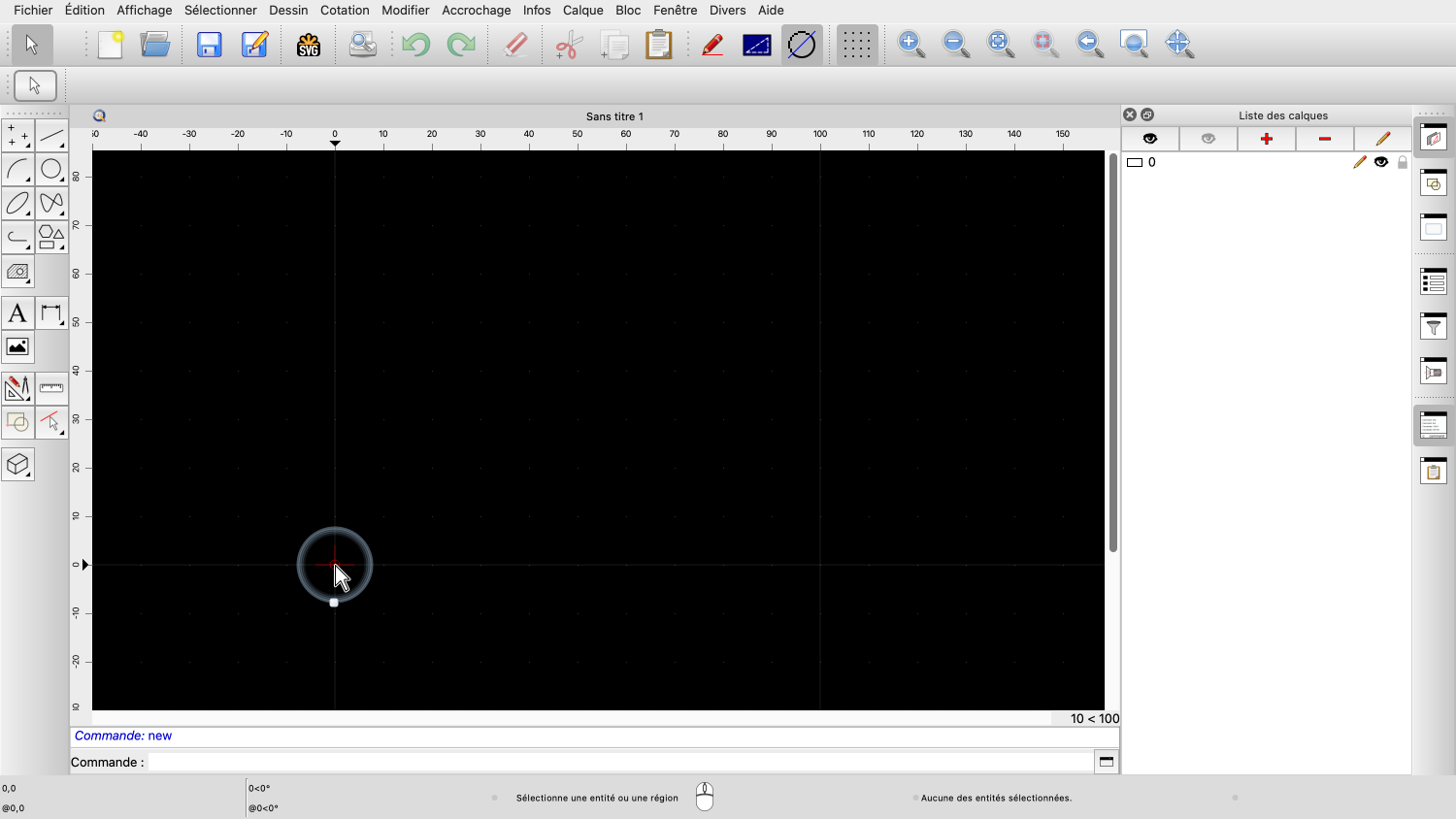 QCAD déplace automatiquement le point zéro relatif à la dernière position utilisée dans le dessin.