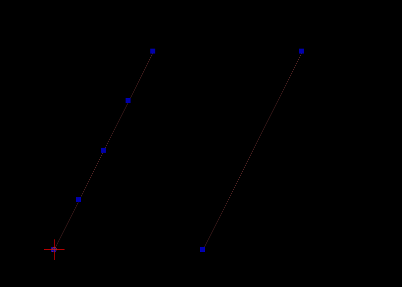 Here we have a straight line composed of four individual segments, which were then turned into a polyline. To the right is a normal straight line.