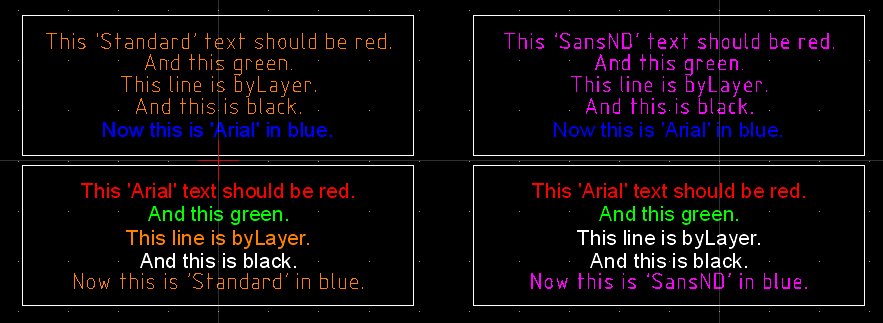 FS#2170 - Draw > Text: Wrong color for formatted text blocks using a CAD font