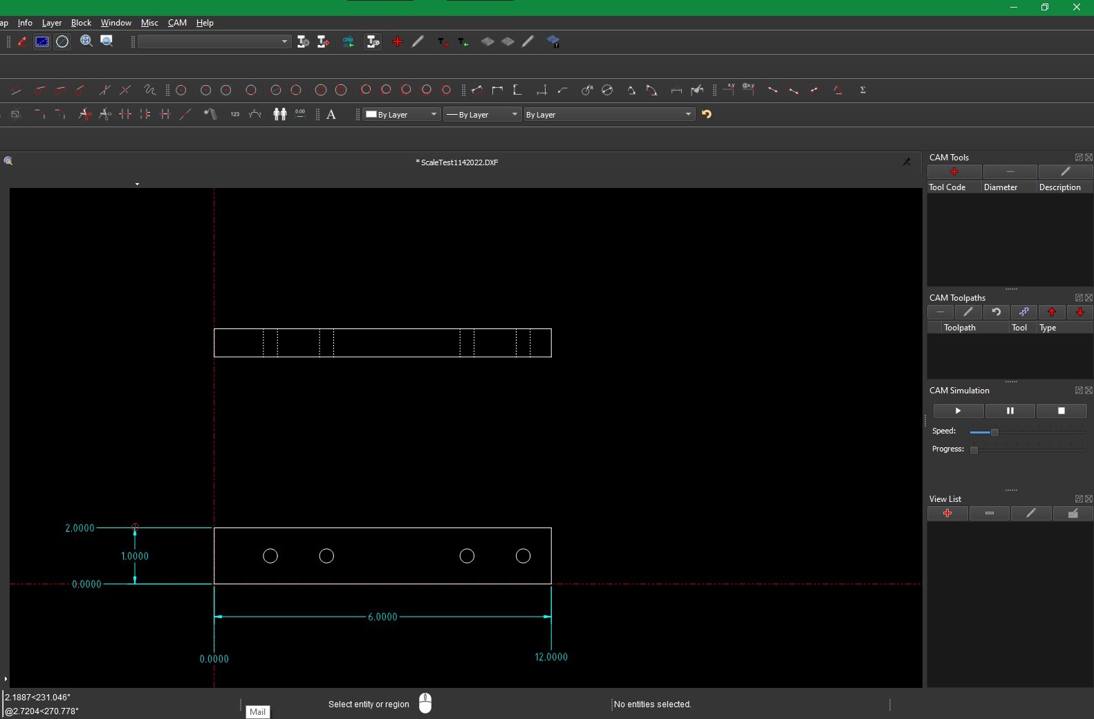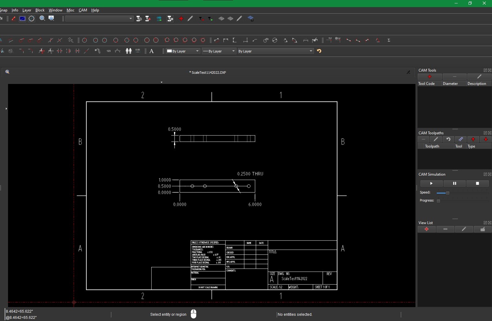 Step 1; Import CAD file “ScaleTest1142022.DXF” which is scaled at 1:2 from the previous software (Solidworks).