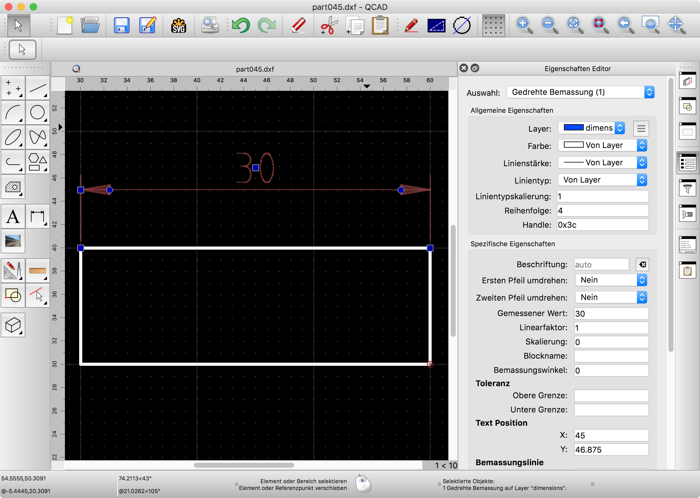 Das Problem mit geladenen Zeichnungen kann bei Zeichnungen aus älteren Versionen von QCAD auftreten.