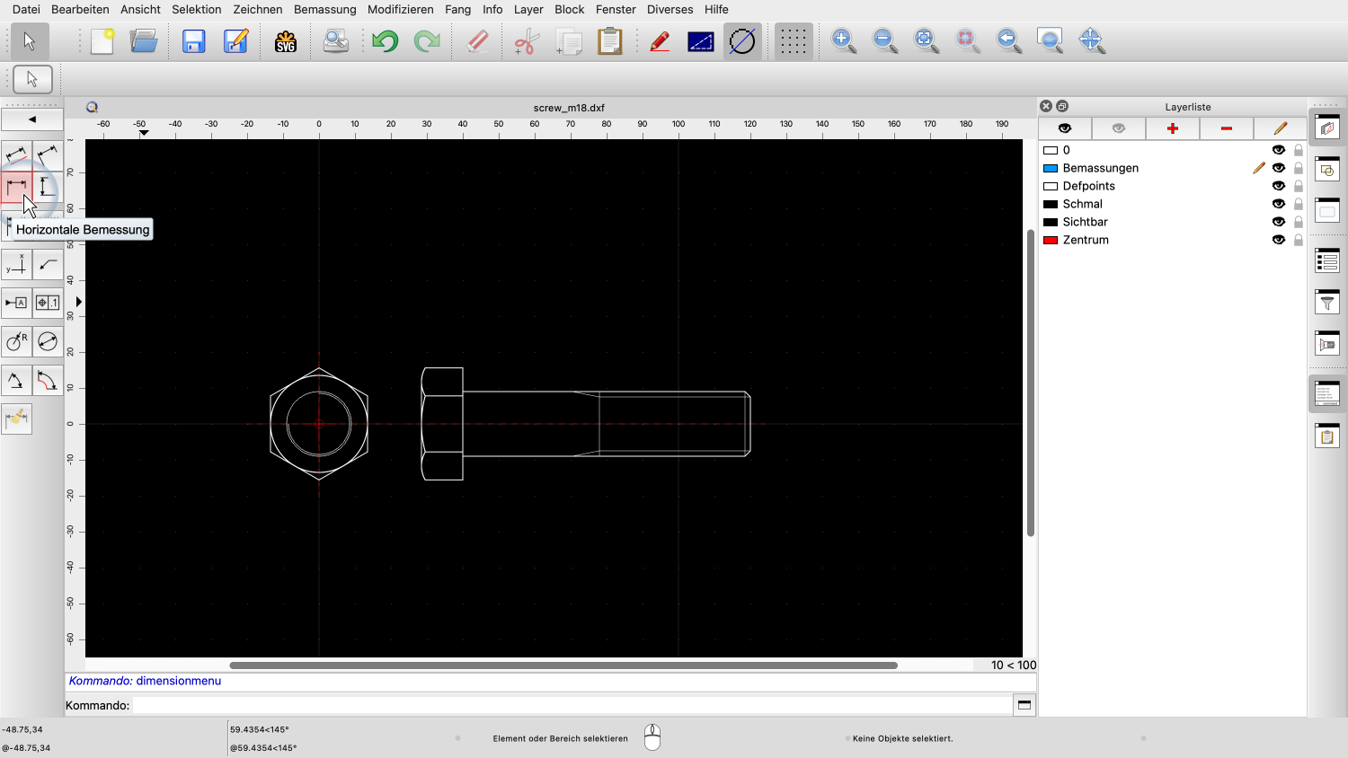In dieser Zeichnung wollen wir die Beschriftung der Bemassung für den Schraubenkopf verschieben.