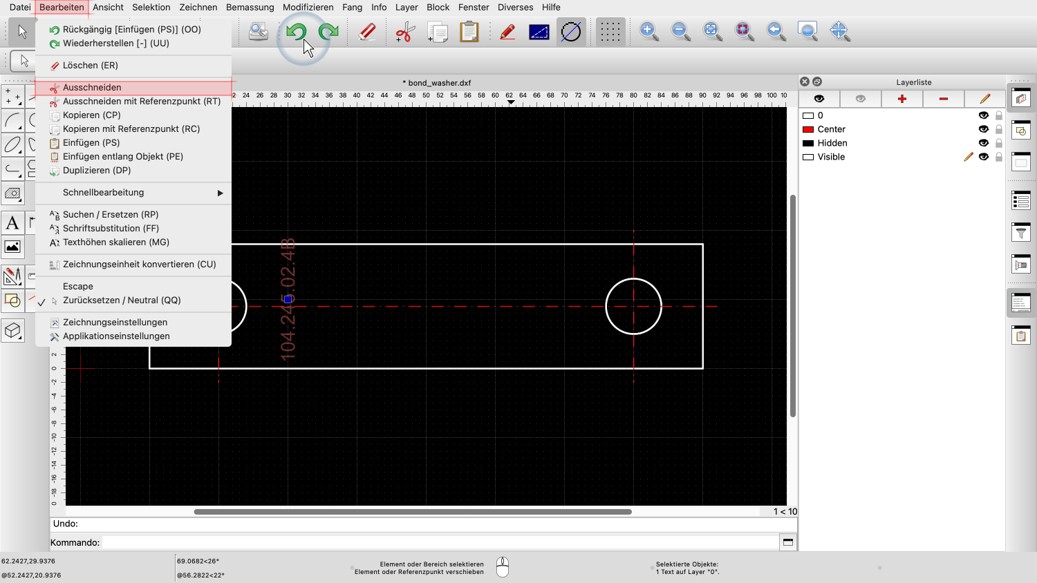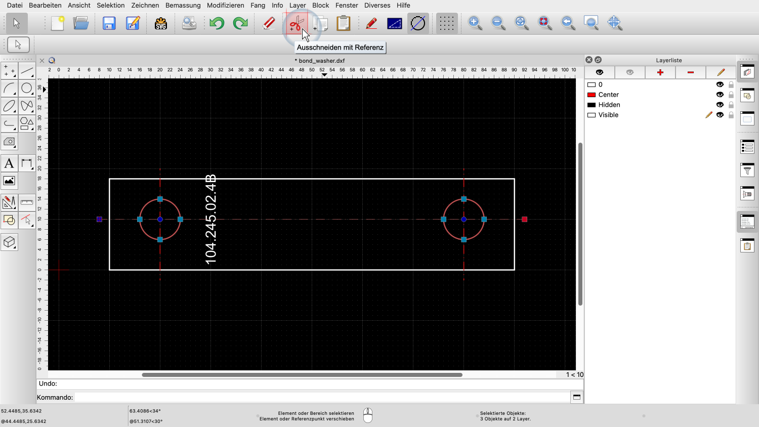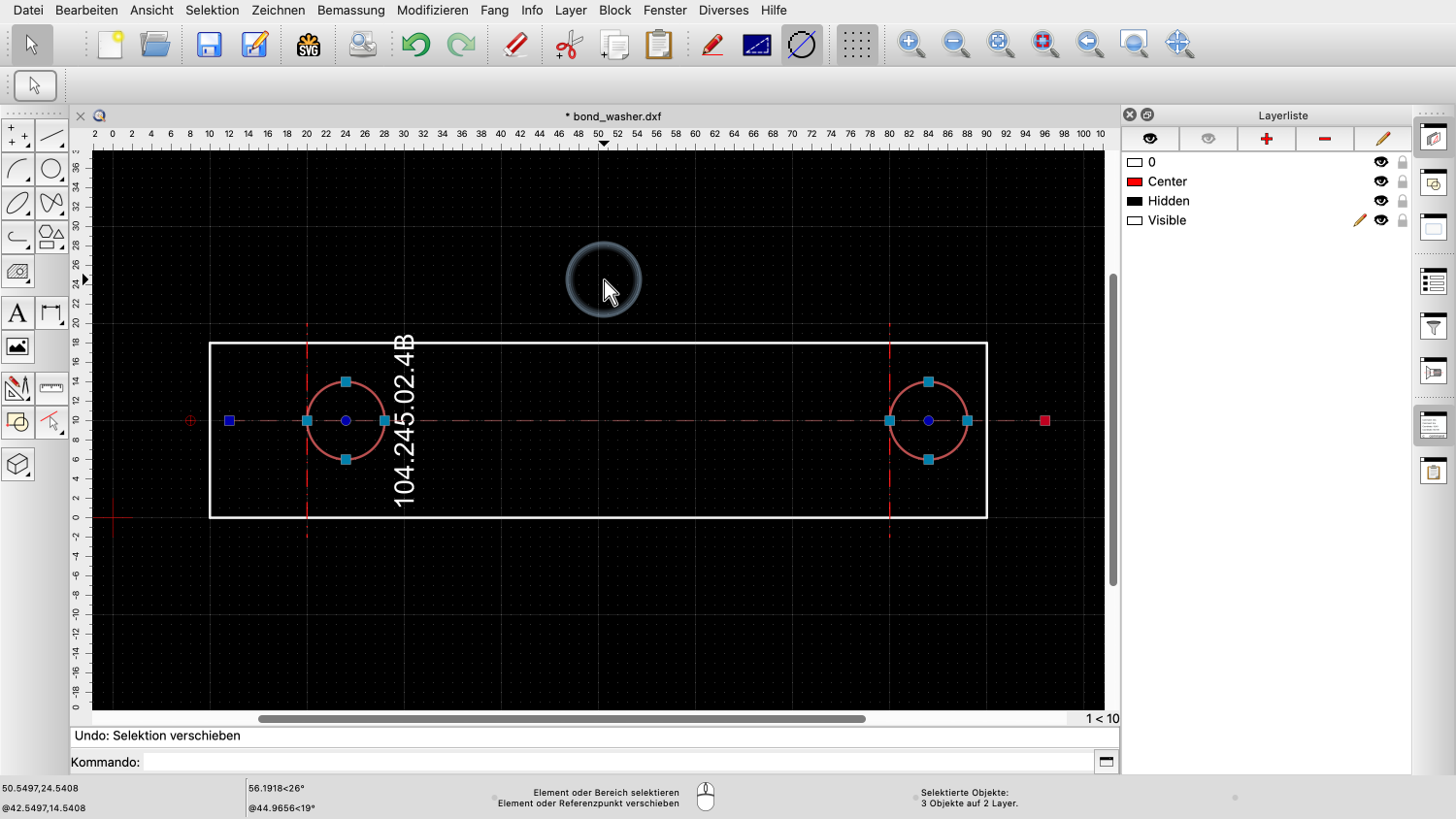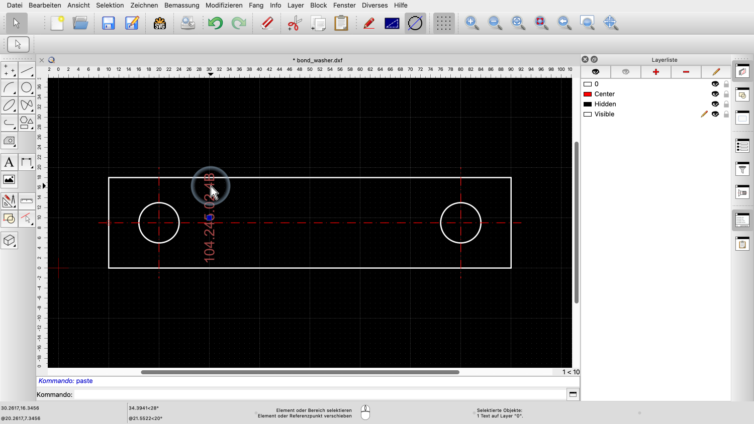 Die Mittellinie und die beiden Kreise befinden sich jetzt in der Zwischenablage von QCAD.