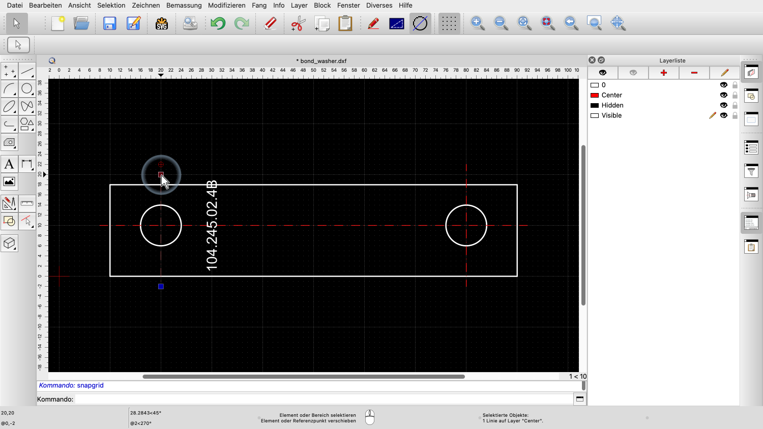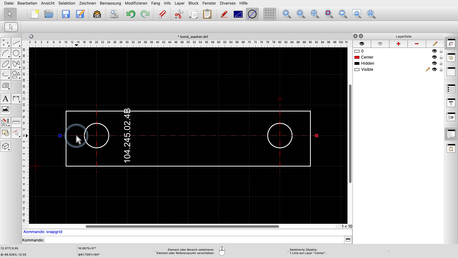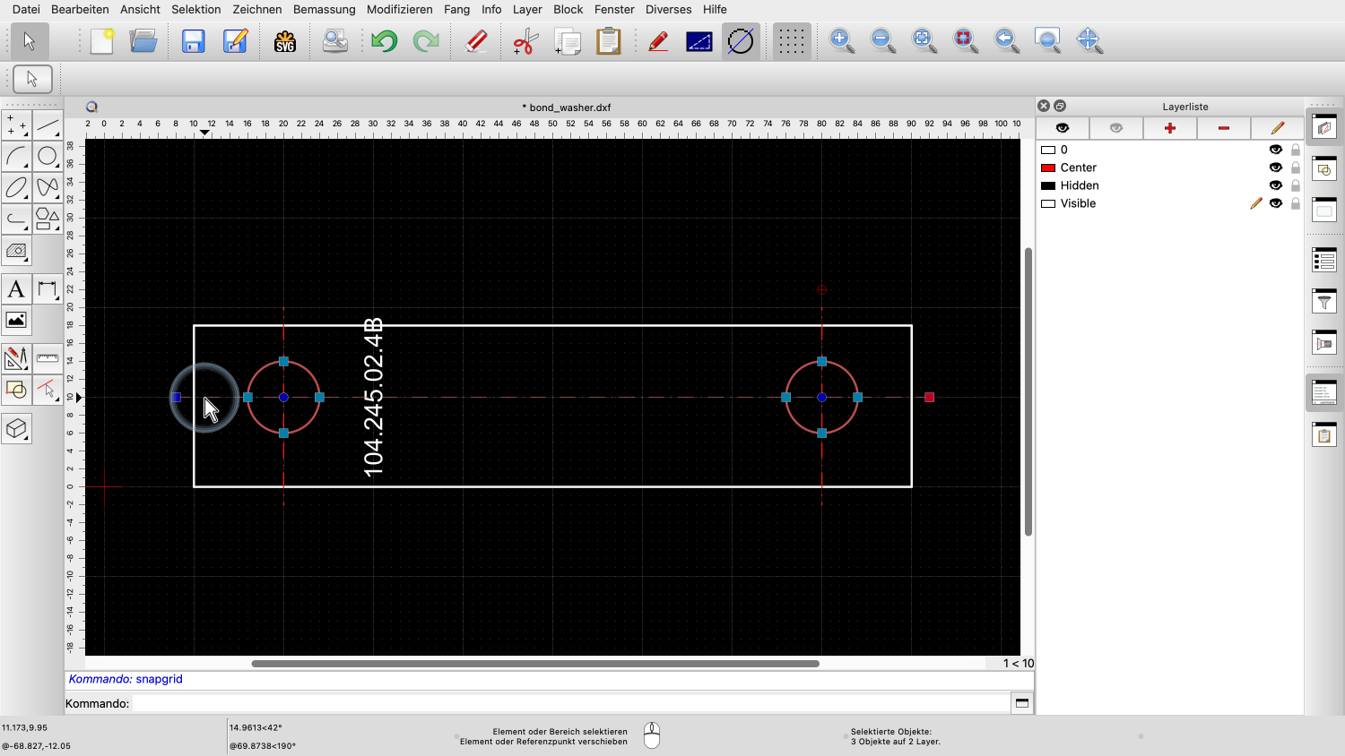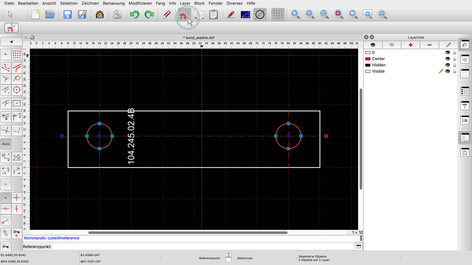 Die Mittellinie und die beiden Kreise befinden sich jetzt in der Zwischenablage von QCAD.
