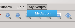 The file "MyScripts.js" defines the base class for all scripts that will be placed in this hierarchy. It also defines the top-level menu title and tool bar name. All actions inside our 'MyScripts' folder are derived from class 'MyScripts' and use functionality of this base class to define in which menu / tool bar they are shown. For this example, we want the menu to be labeled "My Scripts". Here's the complete code for 'MyScripts.js':