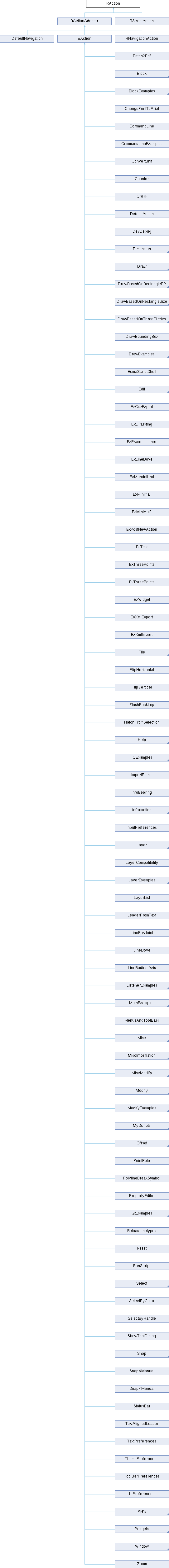 Implemented in AddBlock, Block, BlockInsert, CreateBlock, DeselectBlockReferences, EditBlock, EditFromReference, EditMainDrawing, HideAllBlocks, InsertBlock, InsertBlockItem, InsertScriptItem, RemoveBlock, RenameBlock, SelectBlockReferences, ShowAllBlocks, ToggleBlockVisibility, DefaultAction, Arc, Arc2PA, Arc2PH, Arc2PL, Arc2PR, Arc3P, ArcCPA, ArcTangential, ArcTPR, Circle, Circle2P, Circle2PR, Circle2TP, Circle2TR, Circle3P, Circle3T, CircleCP, CircleT2P, DimAligned, DimAngular, DimDiametric, Dimension, DimOrdinate, DimRadial, DimRegen, DimRotated, Leader, DrawBasedOnRectanglePP, DrawBasedOnRectangleSize, DrawBasedOnThreeCircles, Ellipse, EllipseArcCPPA, Hatch, HatchFromSelection, Image, Line, Line2P, LineAngle, LineBisector, LineFreehand, LineHorizontal, LineOrthogonalTangent, LineRelativeAngle, LineTangent1, LineTangent2, LineVertical, Point, Point1P, DrawPolyline, Polyline, Shape, ShapePolygonAFCP, ShapePolygonAFPP, ShapePolygonCP, ShapePolygonPP, ShapeRectanglePP, Spline, SplineControlPoints, Text, EAction, AbstractPreferences, ClipboardOperation, ConvertUnit, Delete, DrawingPreferences, Duplicate, Edit, Esc, Paste, Redo, Undo, BitmapExport, CloseFile, File, ImportFile, NewFile, OpenFile, PdfExport, Print, PrintCurrentView, RecentFiles, Save, SaveAs, SvgImport, About, BrowseUserManual, CheckForUpdates, FAQ, Forum, ReportBug, ReportTranslationError, ShowReadme, Website, InfoAngle, InfoArcCircleArea, InfoArea, InfoDistanceEE, InfoDistanceEP, InfoDistancePP, InfoPosition, Information, AddLayer, DeselectLayer, EditLayer, HideAllLayers, Layer, LockAllLayers, RemoveLayer, SelectLayer, ShowActiveLayer, ShowAllLayers, ToggleLayerLock, ToggleLayerVisibility, UnlockAllLayers, ExAddBlock, ExDrawColors, ExDrawFonts, ExLineDove, ExText, ExThreePoints, ExMinimal, ExMinimal2, ExCsvExport, ExDumpPolyline, ExPostNewAction, ExRegisterFileExporter, ExRegisterFileImporter, ExXmlExport, ExXmlImport, ExAddLayer, ExLayerCustomProperty, ExTransactionListener, ExMandelbrot, ExMathSpiral, FlexPainter, ExDeleteObject, ExDirListing, ExMainWindow, ExProcess, ExResizeWindow, ExWidget, Misc, BlockFixNames, BlockListAttributes, BlockListExport, BlockRefExport, DevDebug, EcmaScriptShell, RunScript, Counter, Cross, DrawBoundingBox, DrawFmsLanes, LeaderFromText, LineBoxJoint, LineDove, LineRadicalAxis, PointPole, PolylineBreakSymbol, TextAlignedLeader, TextAlong, InfoBearing, InfoAddCustomCentroid, InfoAreaCentroid, InfoCentroids, InfoCentroidsListener, InfoSumCentroidsWeighted, InfoWireCentroid, Batch2Pdf, ImportPoints, MolImport, ChangeFontToArial, FlushBackLog, ReloadLinetypes, SplineToLine, SelectByColor, SelectByHandle, ExThreePoints, MenusAndToolBars, MyAction, PersistentWidgets, Bevel, BreakOut, BreakOutGap, BreakOutManual, Divide, ToBack, ToFront, EditHatch, EditText, Explode, FlipHorizontal, FlipVertical, Lengthen, Mirror, Modify, ModifyCorner, Offset, OffsetThrough, Reverse, Rotate, Rotate2, Scale, Stretch, Translate, Trim, TrimBoth, DefaultNavigation, IsometricProjection, Projection, Reset, DeselectAll, InvertSelection, Select, SelectAll, SelectContour, SelectIntersectedEntities, SelectLayerByEntity, SelectRectangle, LockRelativeZero, RestrictAngleLength, RestrictHorizontal, RestrictOff, RestrictOrthogonal, RestrictVertical, SetRelativeZero, Snap, SnapAuto, SnapCenter, SnapCoordinate, SnapCoordinatePolar, SnapDistance, SnapDistanceManual, SnapEnd, SnapFree, SnapGrid, SnapIntersection, SnapIntersectionManual, SnapMiddle, SnapMiddleManual, SnapOnEntity, SnapPerpendicular, SnapReference, SnapSelectionCenter, SnapTangential, SnapXManual, SnapYManual, AntialiasingMode, CommandLineFocus, DisplayDistanceAngle, DraftMode, IsometricGridTop, LinetypeMode, ToggleGrid, ToolMatrixFocus, View, AutoZoom, PanZoom, PreviousView, WindowZoom, Zoom, ZoomIn, ZoomOut, ZoomToSelection, BlockList, CommandLine, LayerList, PropertyEditor, StatusBar, CloseAll, NextWindow, PreviousWindow, and RActionAdapter.