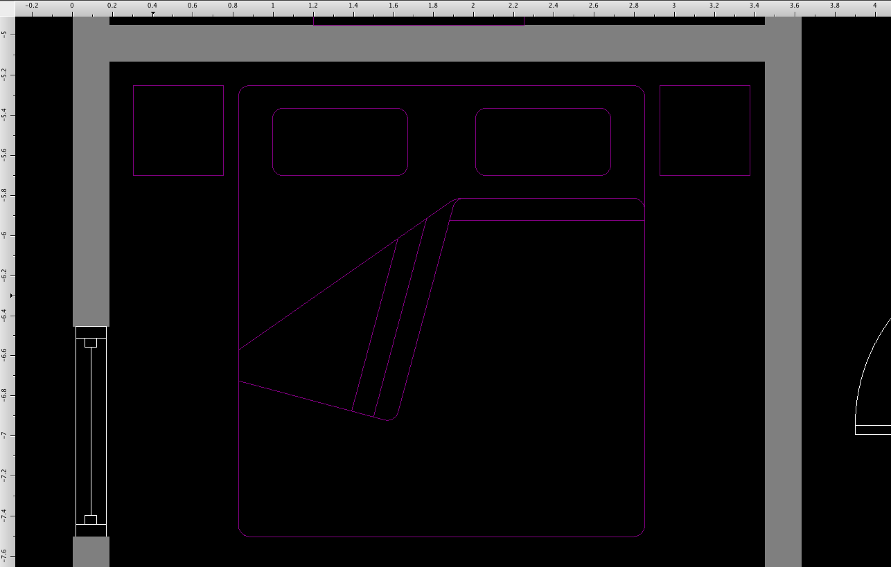 Consider the floorplan at the right which is constructed in Meters. Interiors are shown with a dash line pattern. However, in the model view, the line pattern is too dense to be visible. To show the line pattern, you would have to switch to the print preview and adjust the drawing scale appropriately.