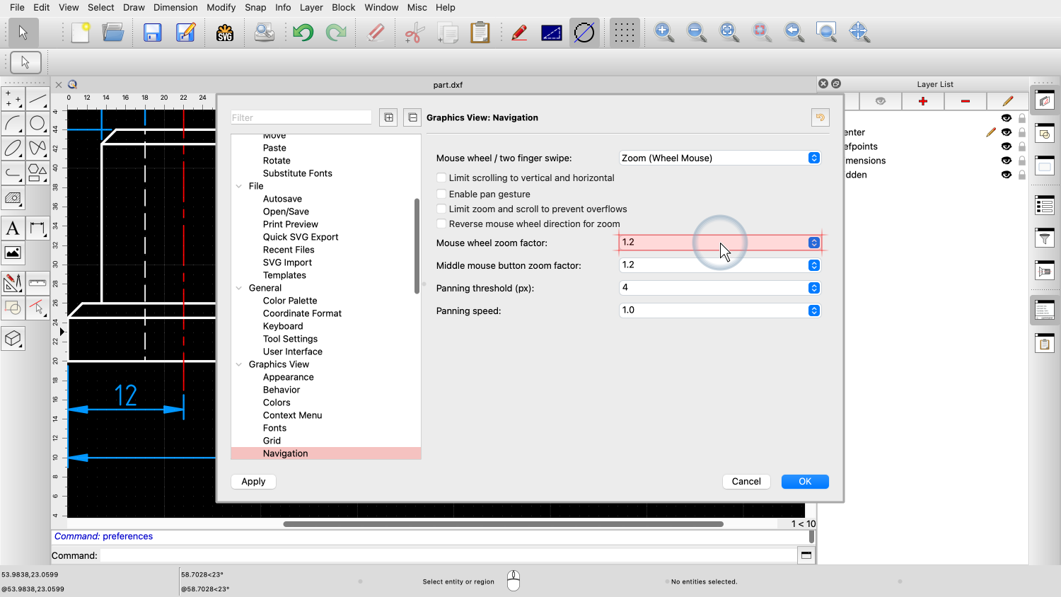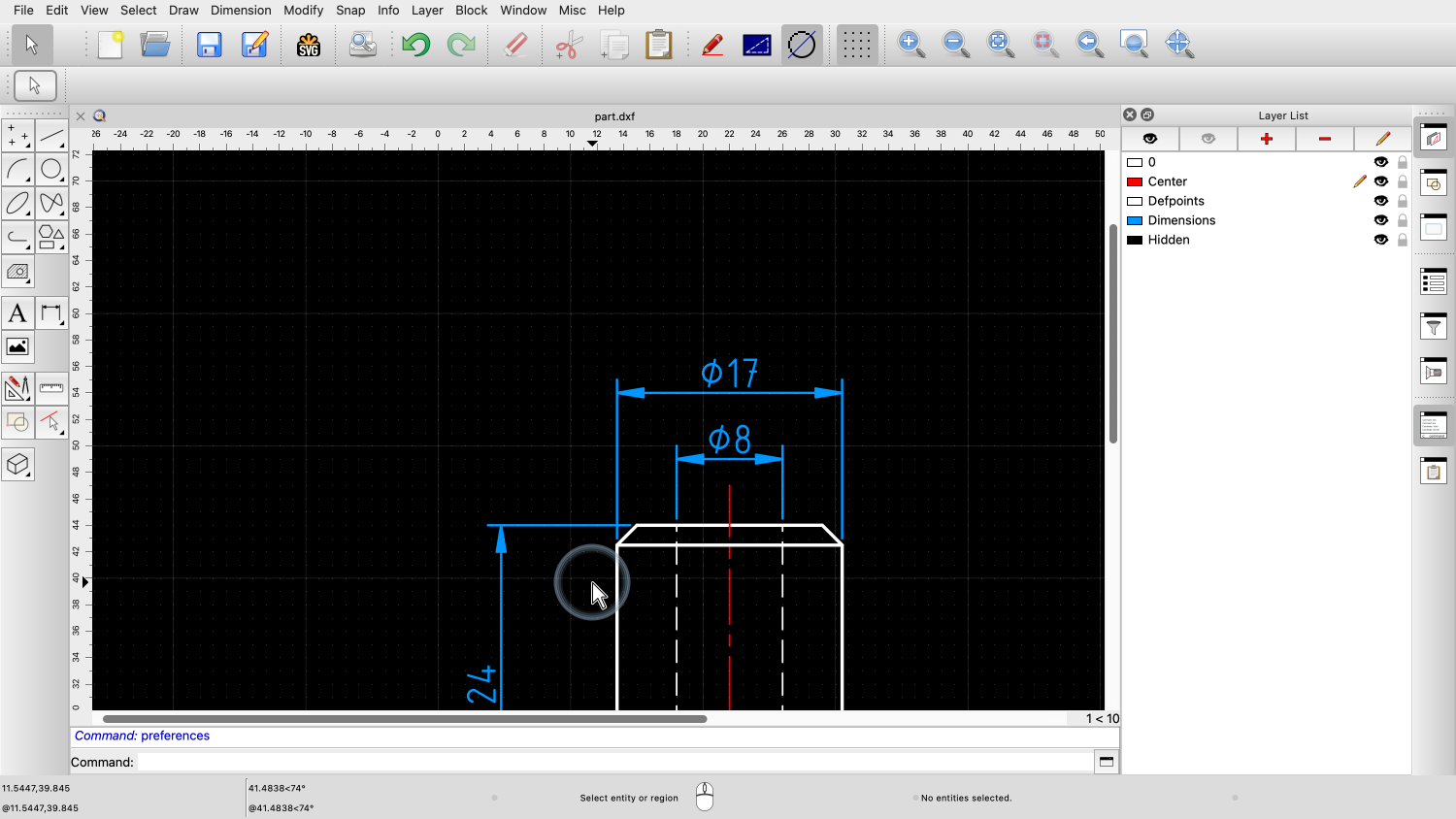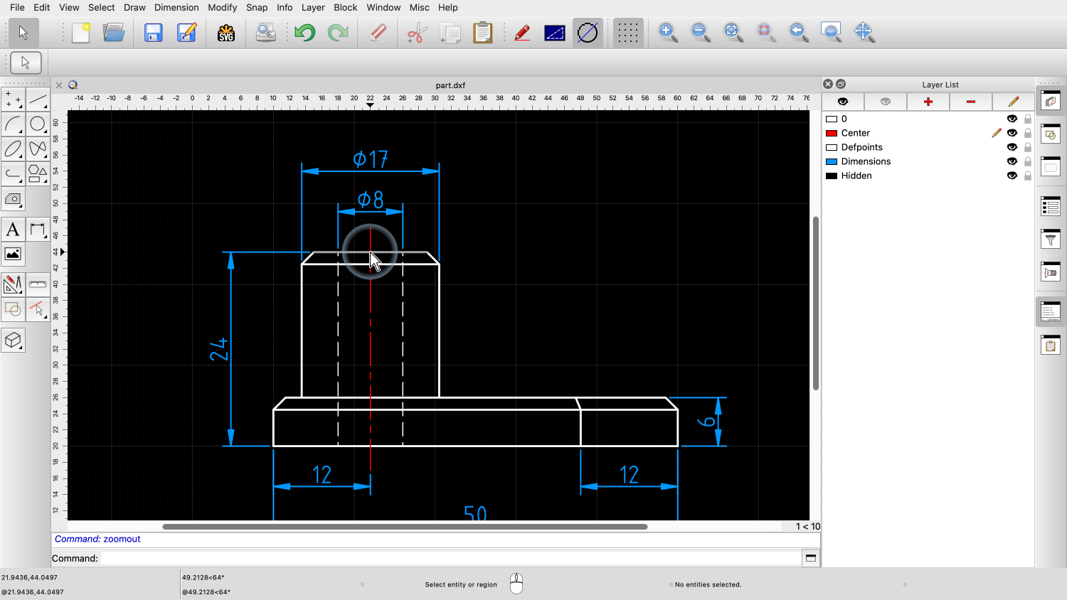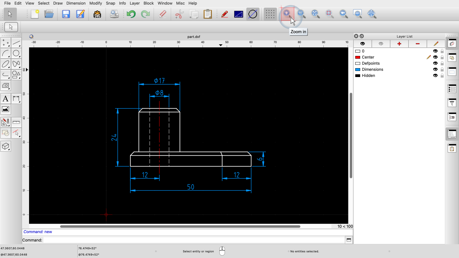 This QCAD tutorial provides an introduction to viewing and navigating drawings. We will learn how to use the most essential zooming and panning tools.