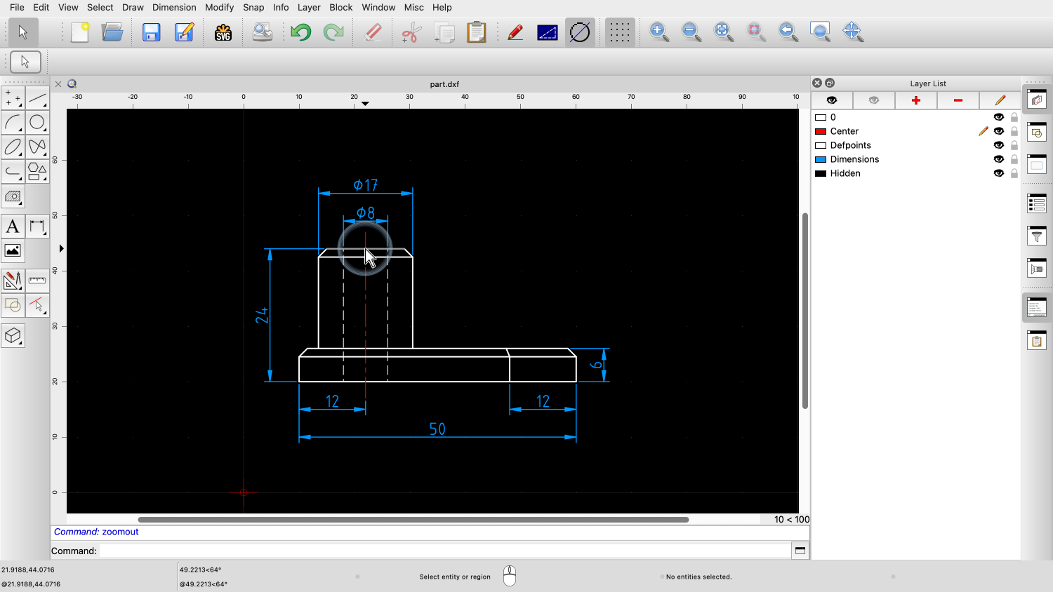 Example drawing: part.dxf