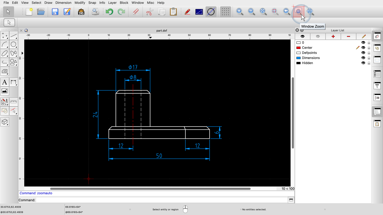 Another way to zoom in on a detail of a drawing is the window zoom.