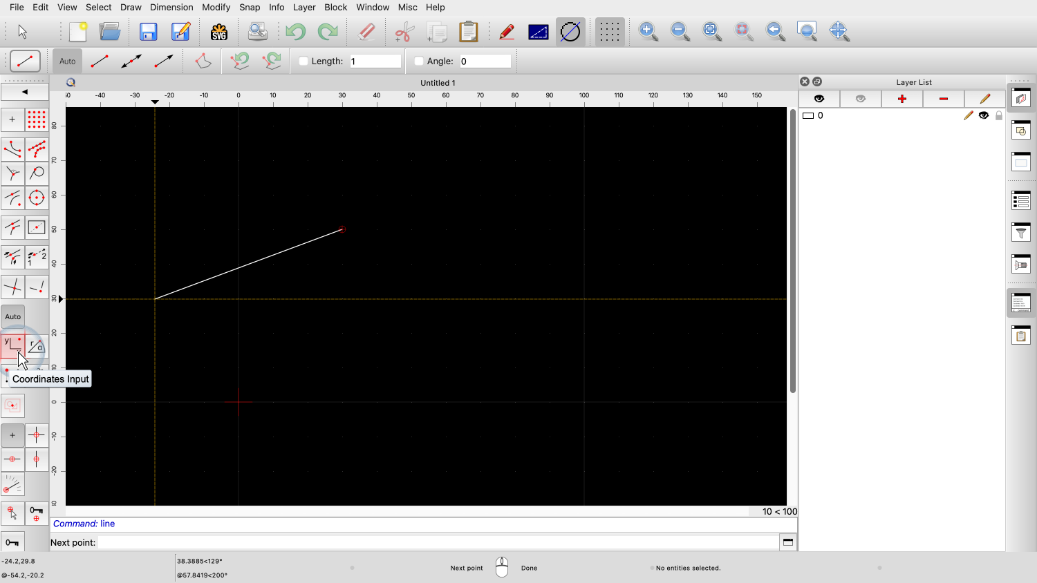 In this QCAD tutorial, we will learn the basics about coordinates and how they can be used in a CAD software.
