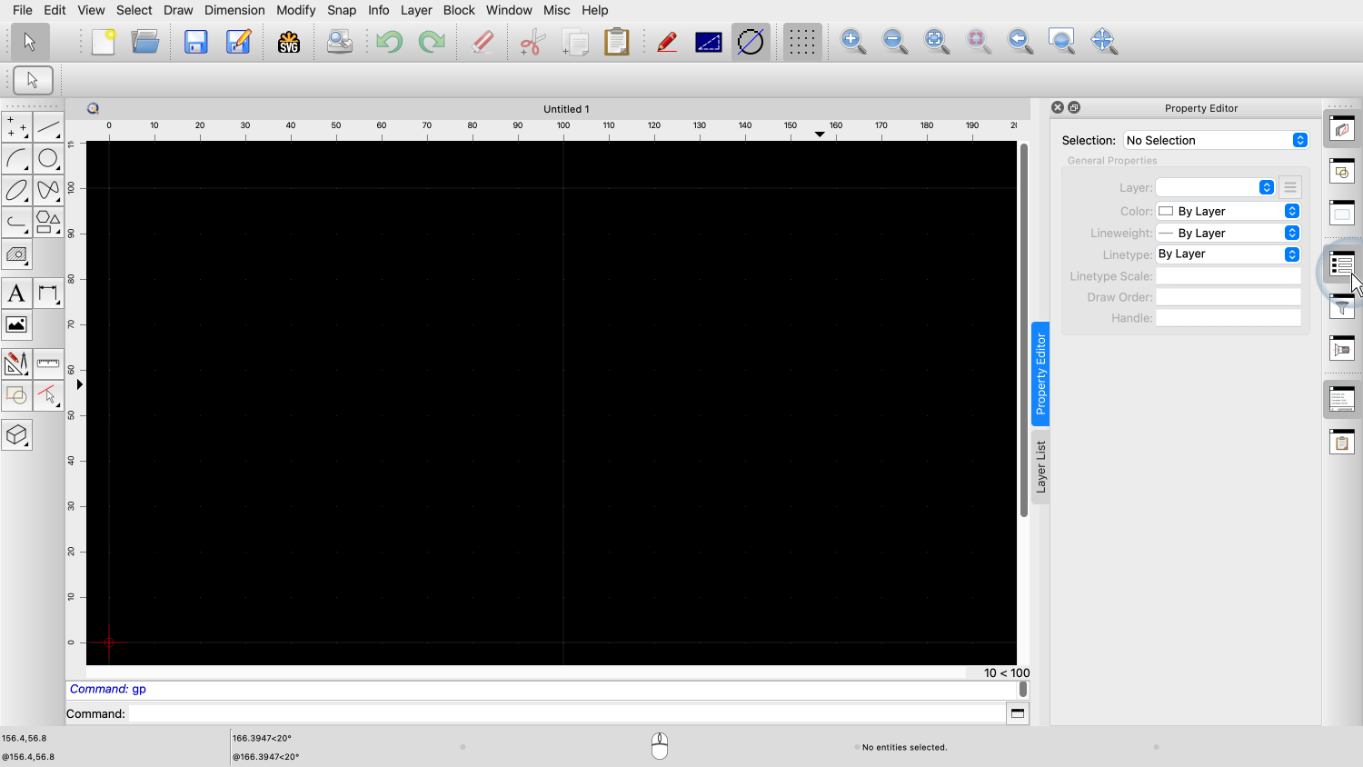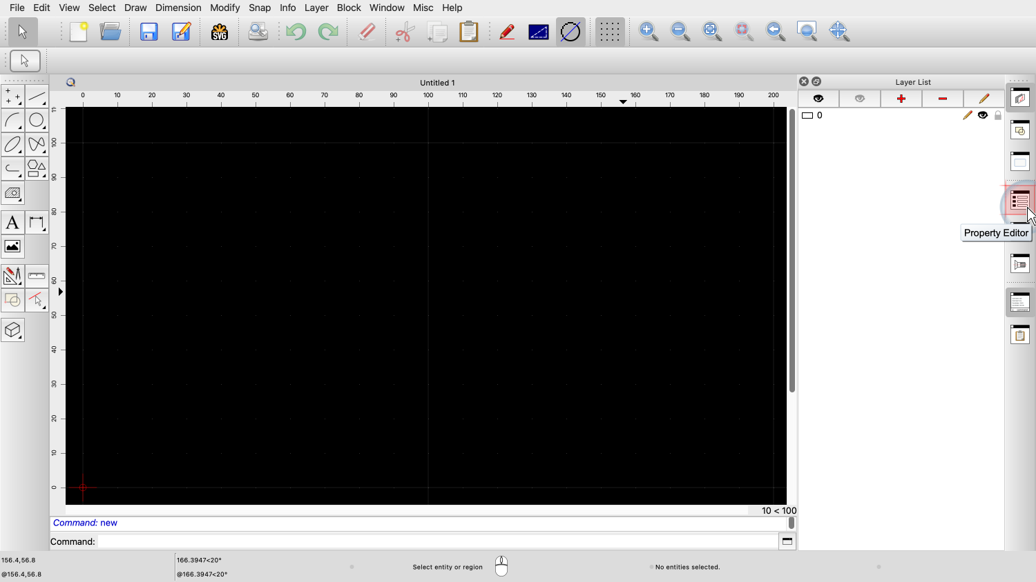 Before we can use the property editor, our drawing has to have at least one entity that is selected.