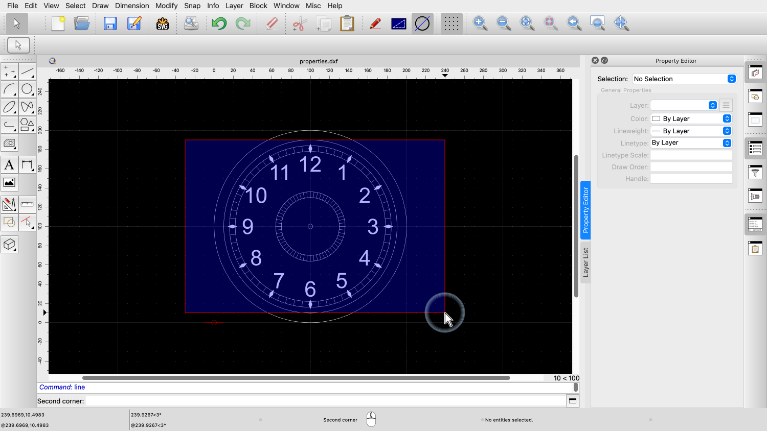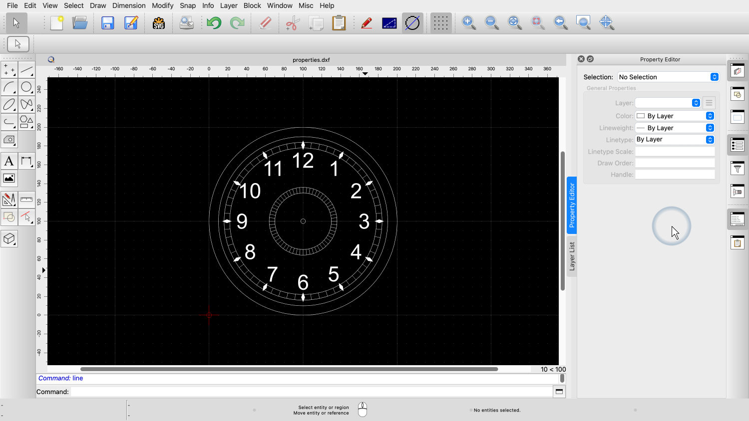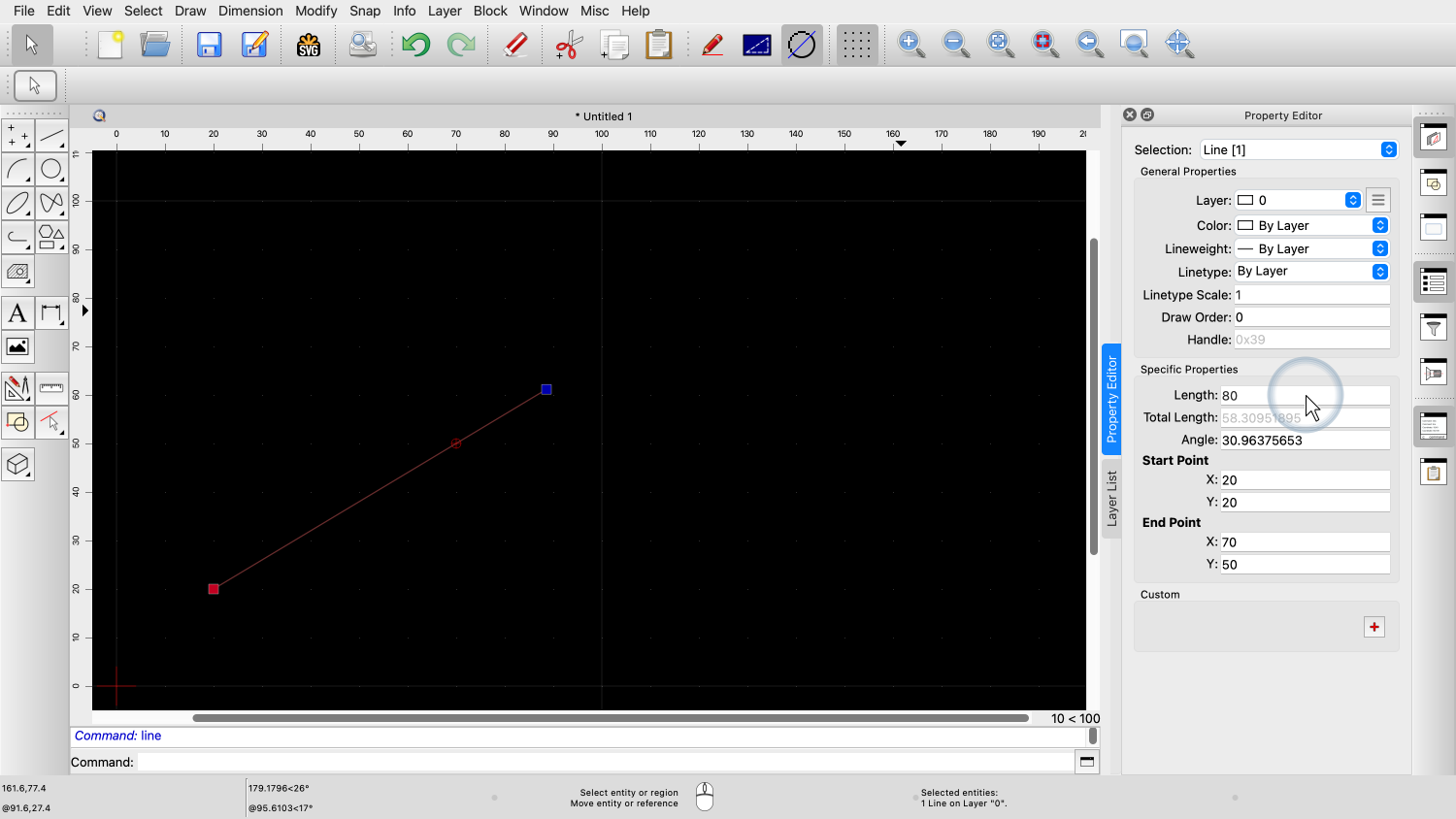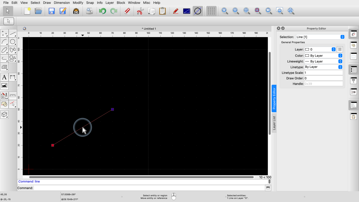 You should now know how to use the property editor of QCAD to view and change properties of entities in your drawing.