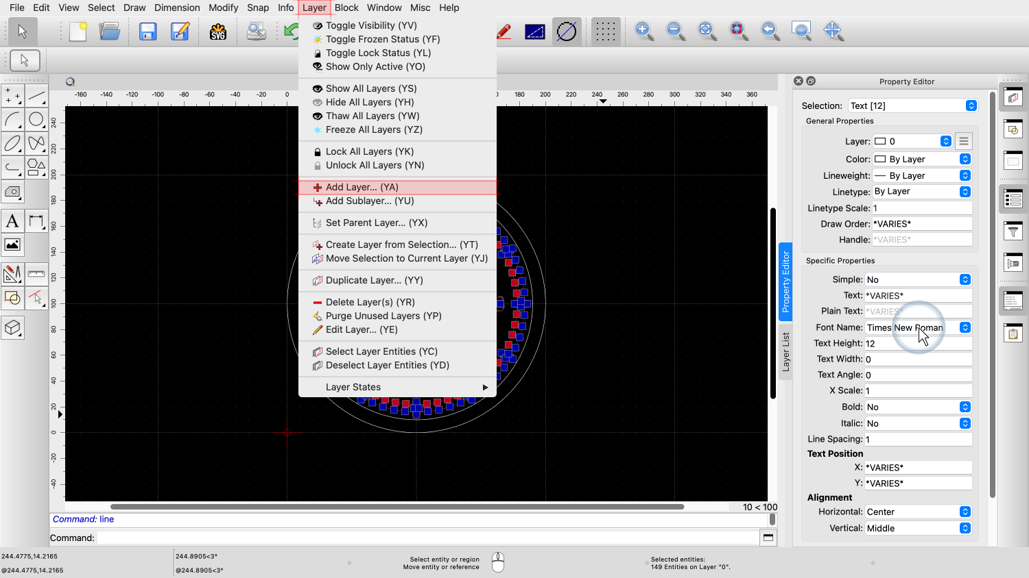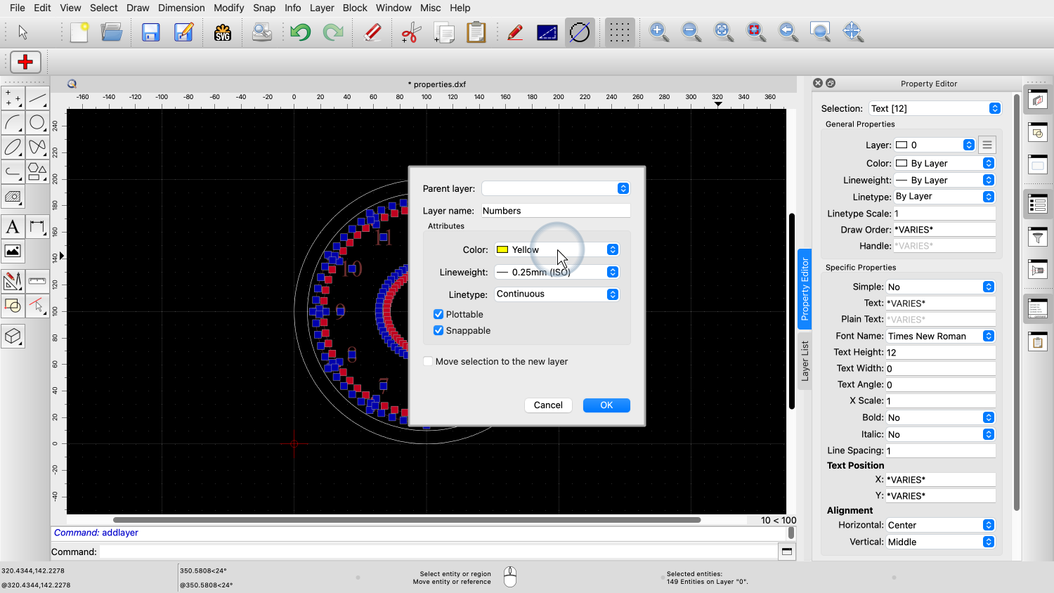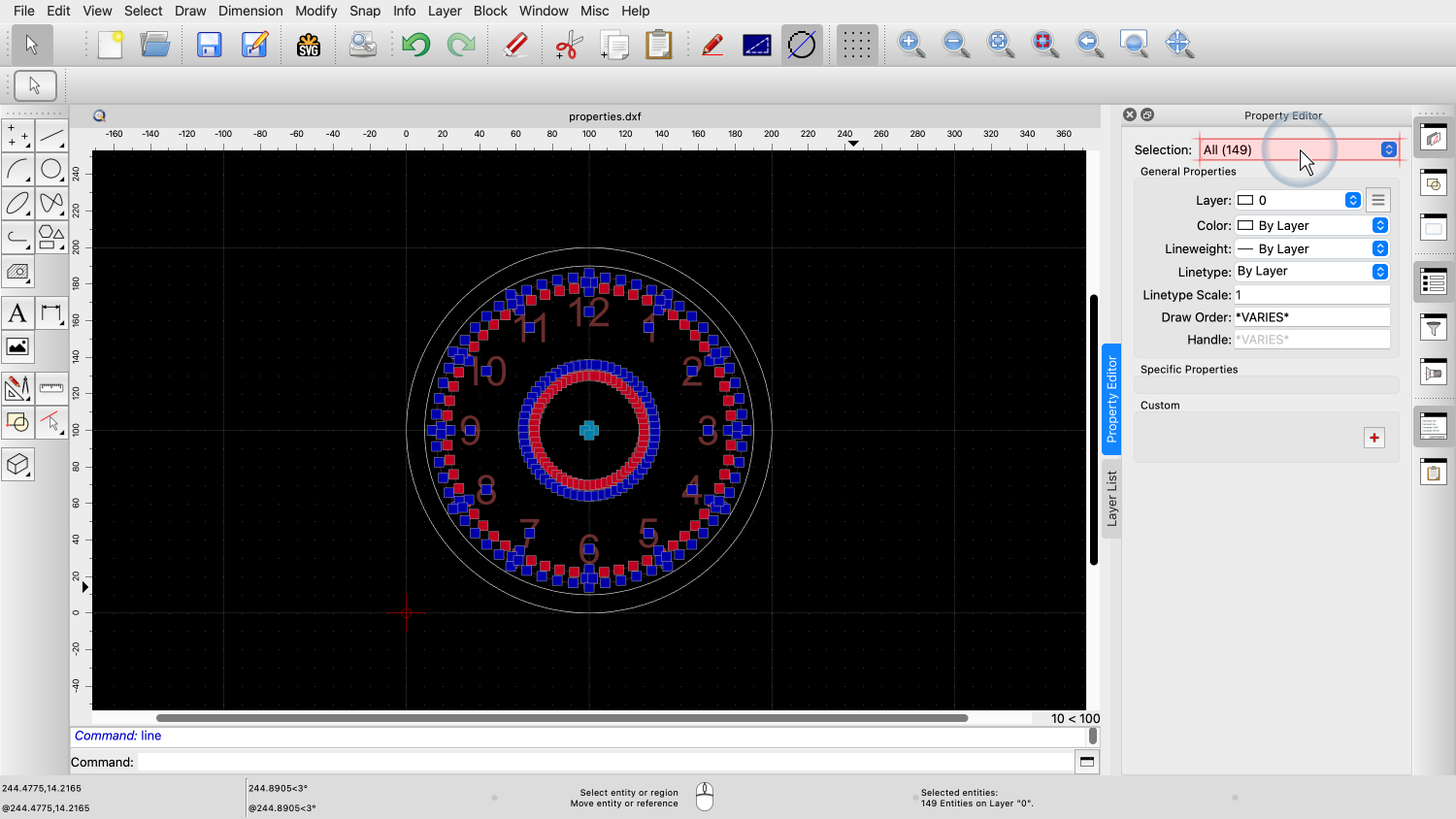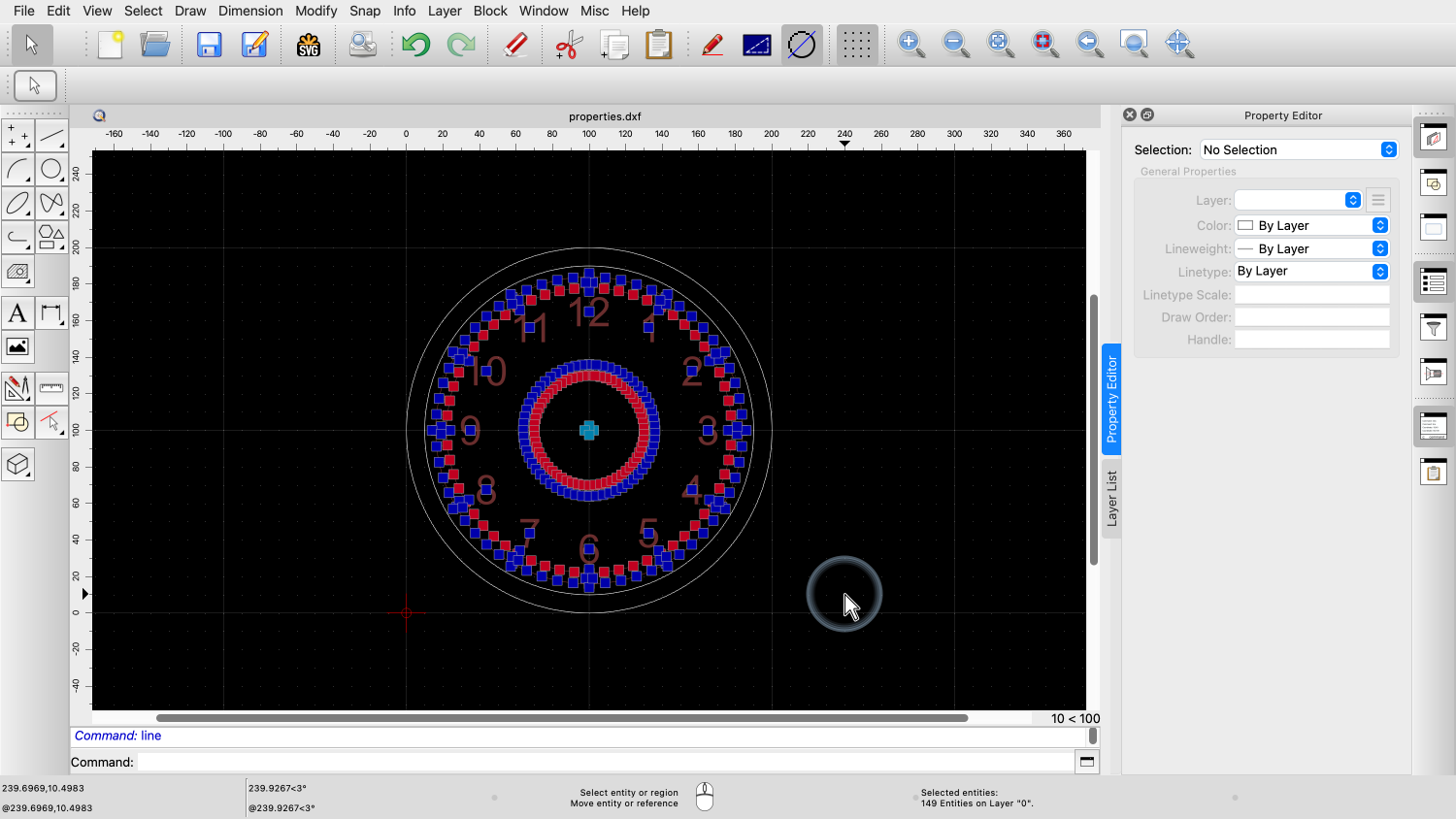 You should now know how to use the property editor of QCAD to view and change properties of entities in your drawing.