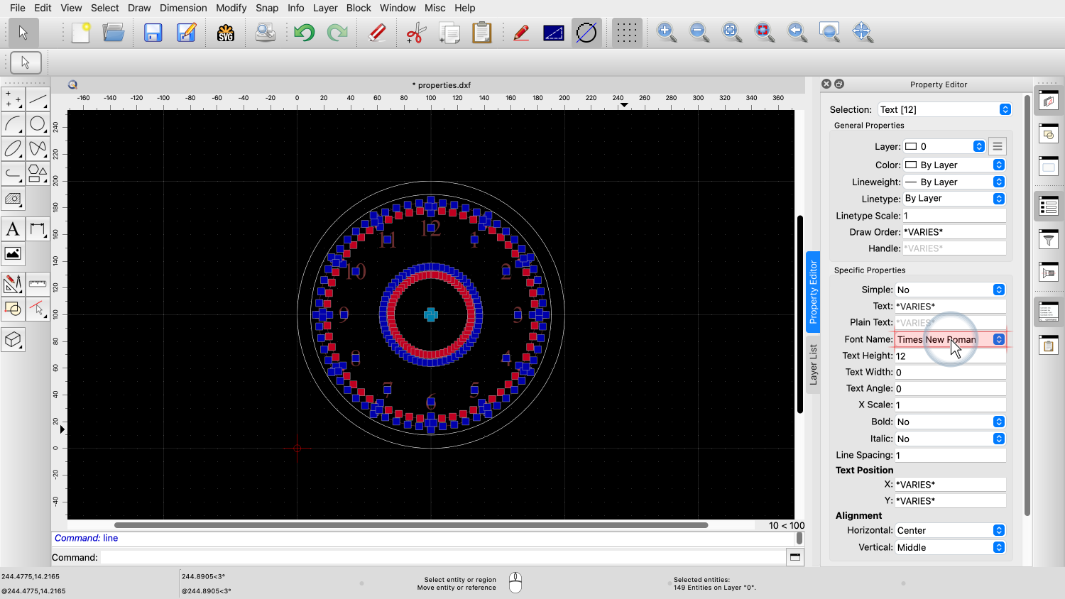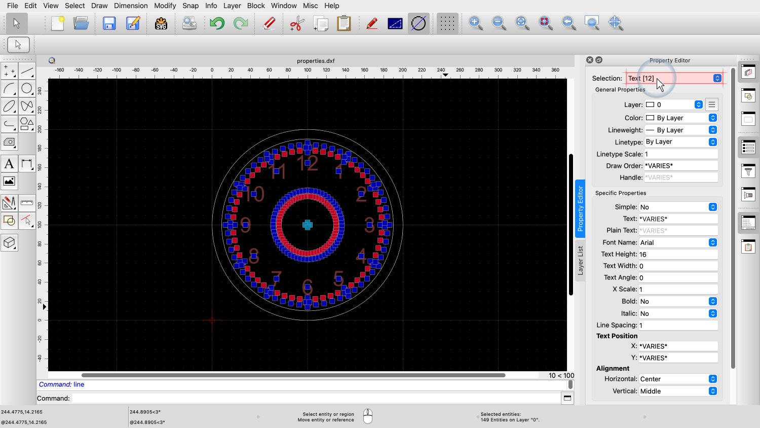 The number in square brackets indicates that there are 12 text entities selected and our changes to properties will only affect these 12 entities.