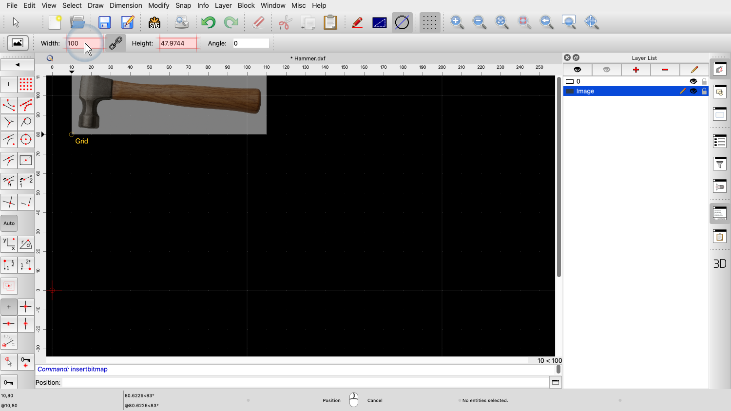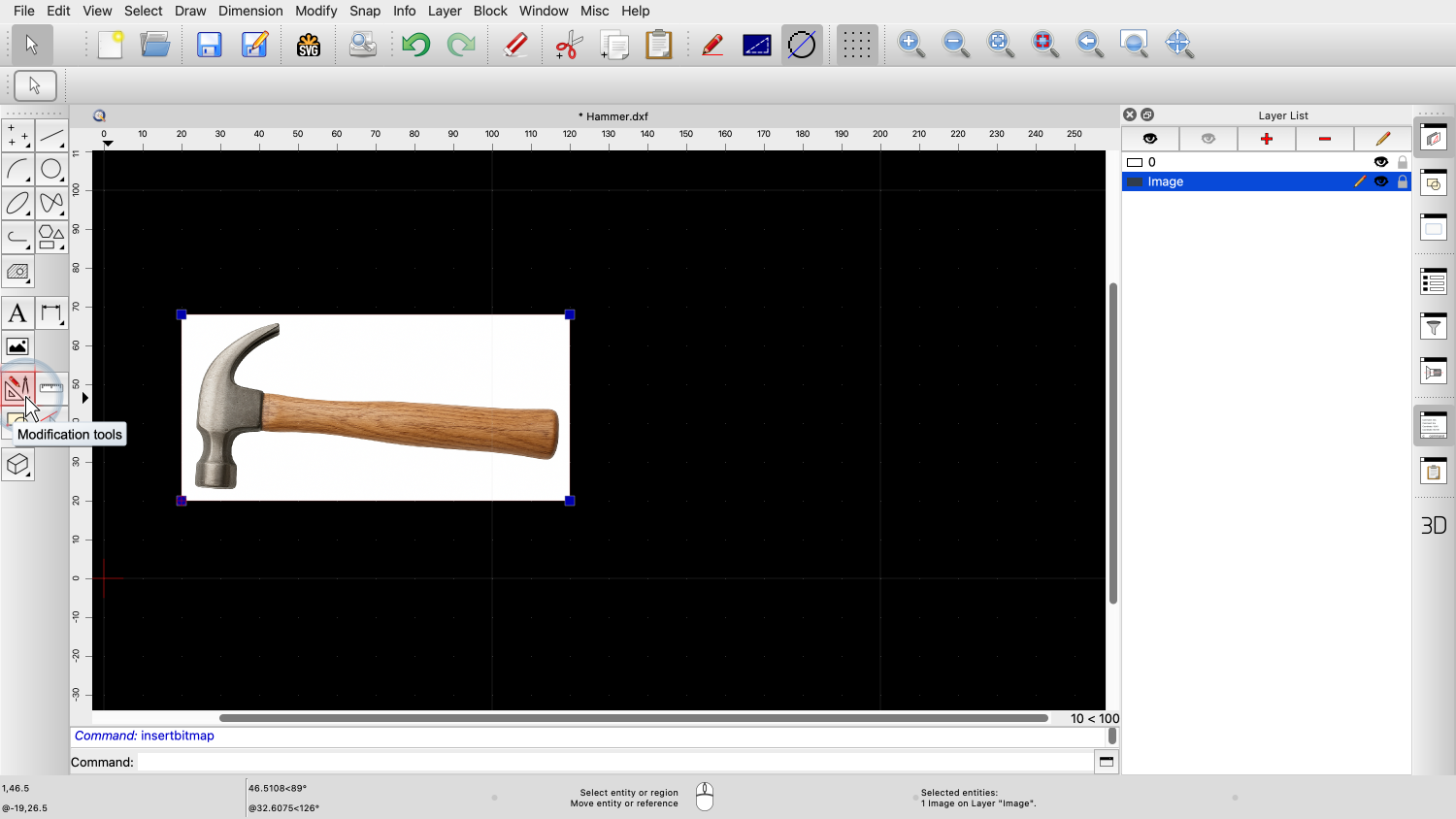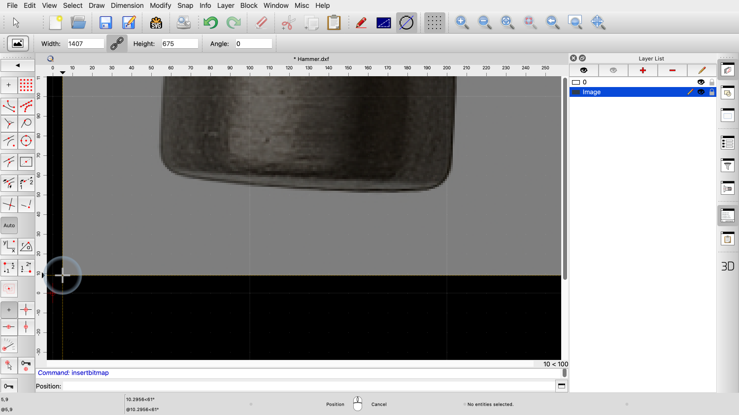 image as desired. We use the bitmap tool in the CAD toolbar at