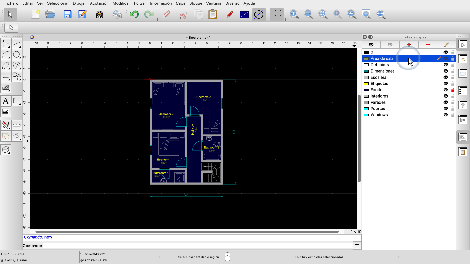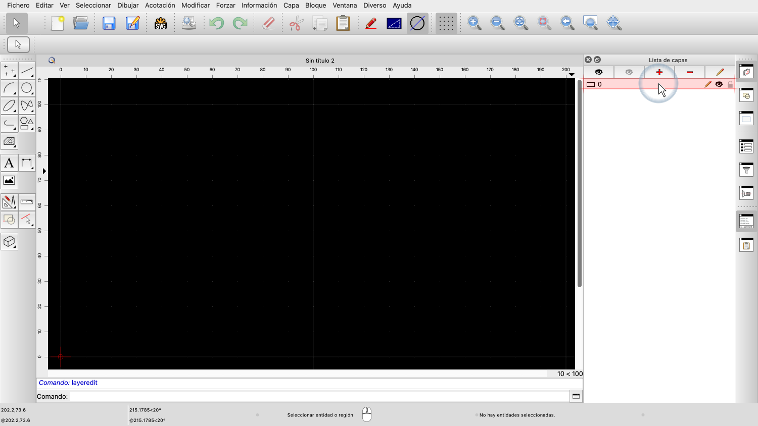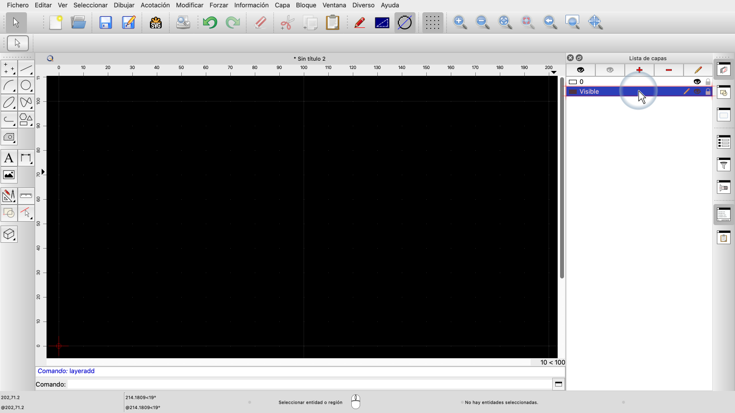 Ahora, vamos a empezar con un nuevo dibujo para aprender cómo se pueden crear capas desde cero.