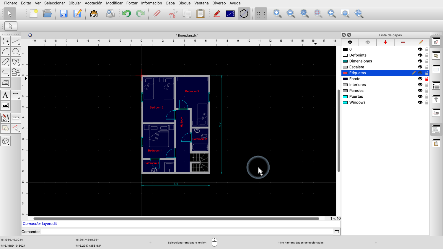 Cambiamos frecuentemente de capa para asegurarnos de que cada entidad se crea en la capa que le corresponde.