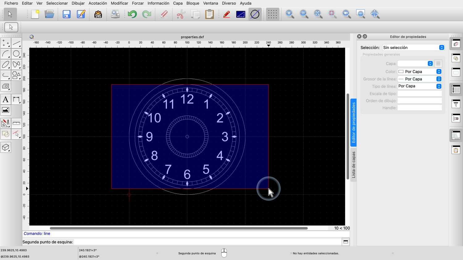 Antes de poder utilizar el editor de propiedades, nuestro dibujo debe tener al menos una entidad seleccionada.
