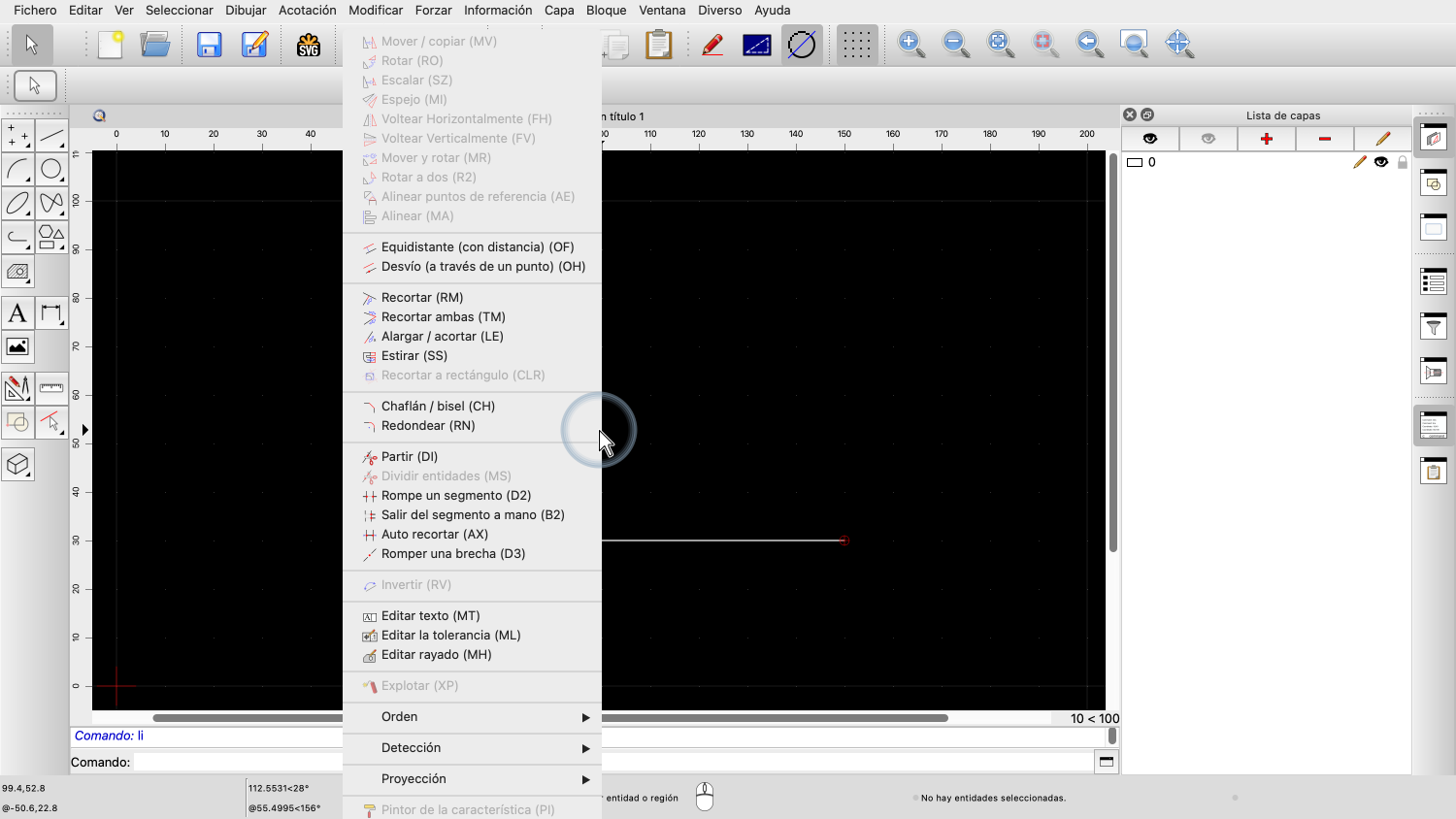 La mayoría de las herramientas y funciones de QCAD tienen este tipo de accesos directos de dos letras.