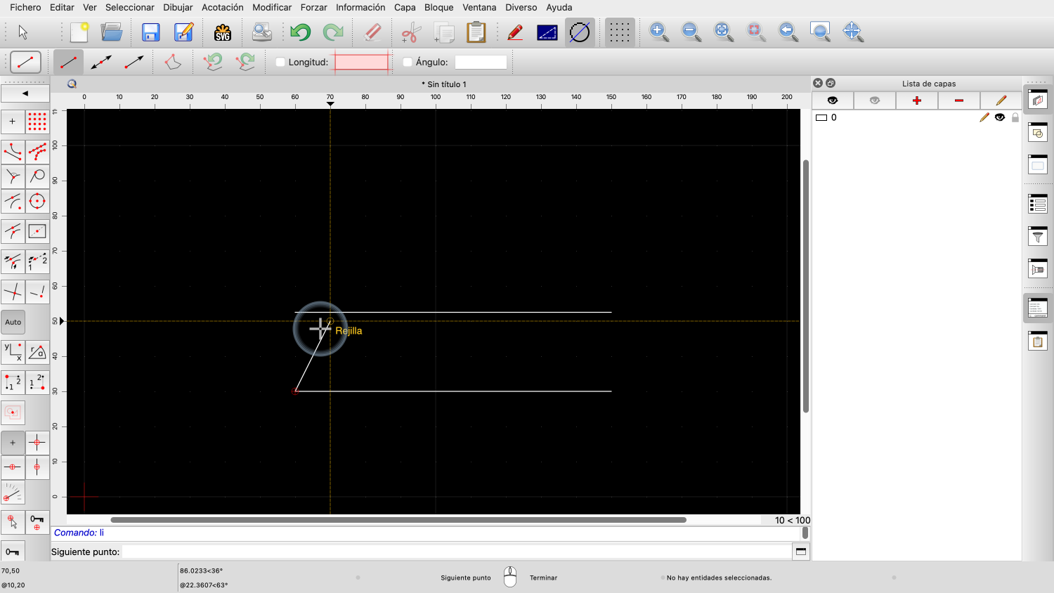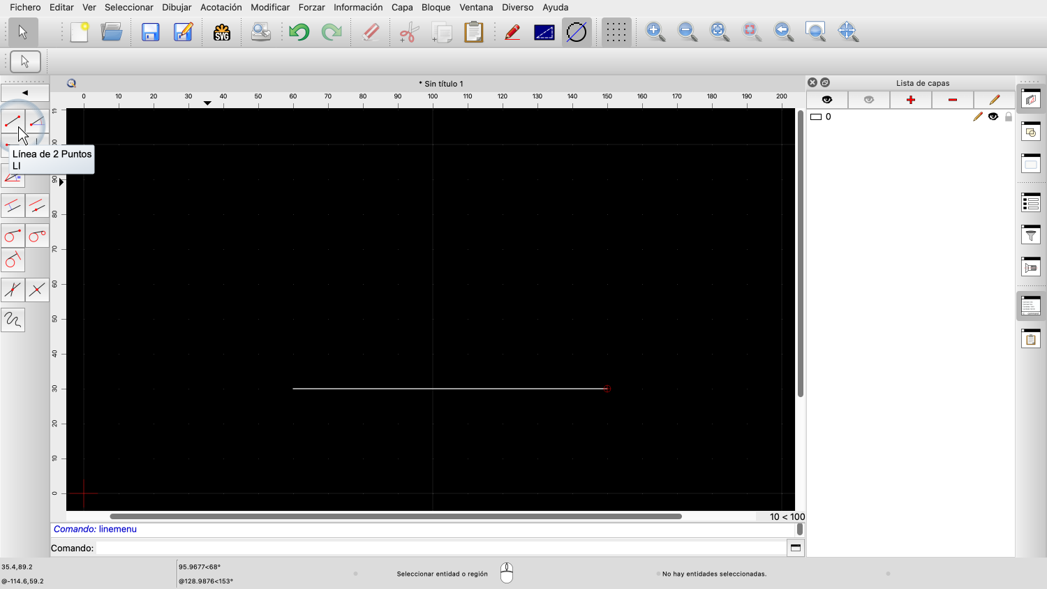 Volvemos a echar un vistazo a la herramienta de líneas, ya que suele ser una de las más utilizadas en QCAD.