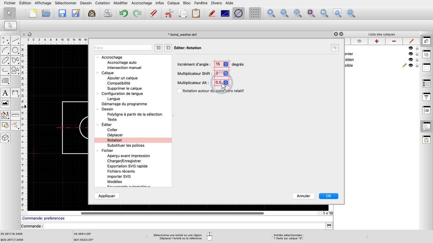 Nous pouvons configurer l'angle de rotation dans les préférences de l'application.