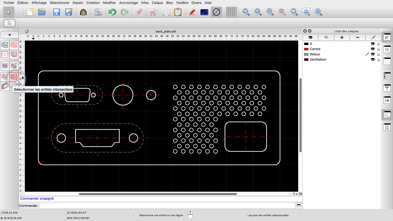 En outre, QCAD offre également une gamme d'outils de sélection dédiés.