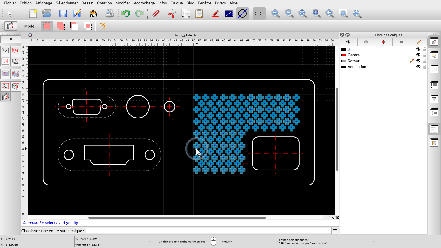 Comme tous les trous d'aération se trouvent sur le même calque, c'est un moyen rapide de les sélectionner tous en une seule fois.