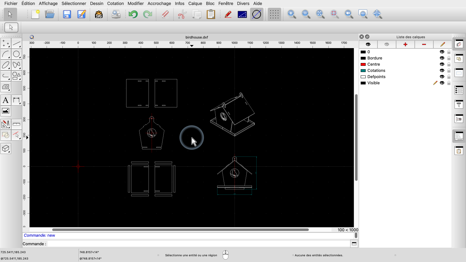 Exemple de dessin : birdhouse.dxf
