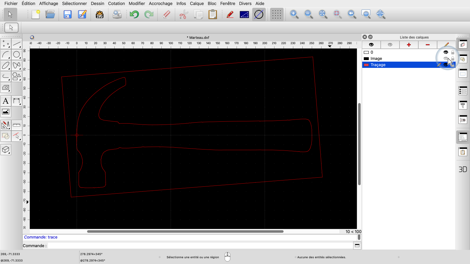 QCAD ajoute la trace de l'image à notre dessin sous forme de polylignes sur notre calque actuel.