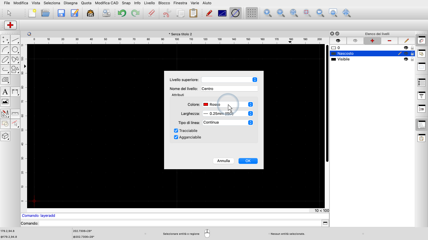I livelli sono fondamentali per il CAD e li utilizzeremo per tutti i nostri disegni.