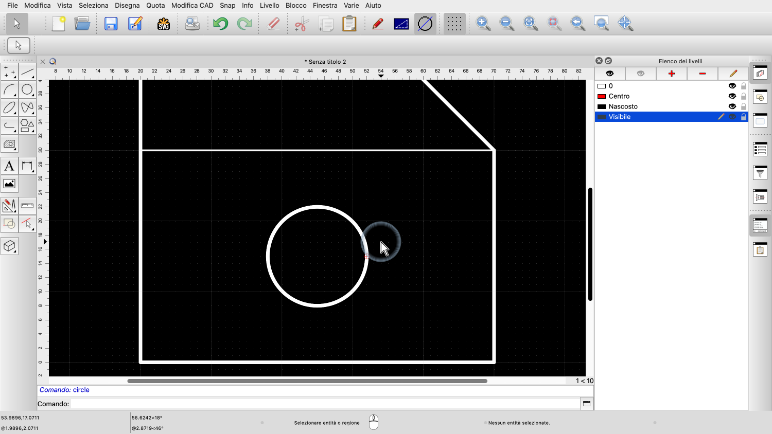 Aggiungiamo il cerchio sul livello "Visibile", poiché rappresenta un bordo visibile di una foratura.