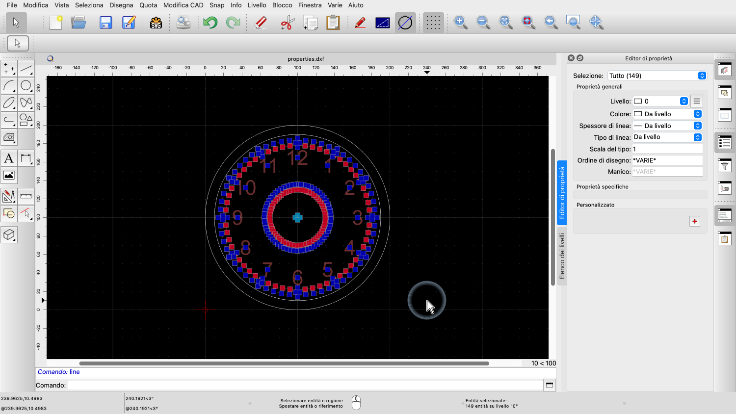 Ora si dovrebbe sapere come utilizzare l'editor delle proprietà di QCAD per visualizzare e modificare le proprietà delle entità nel disegno.