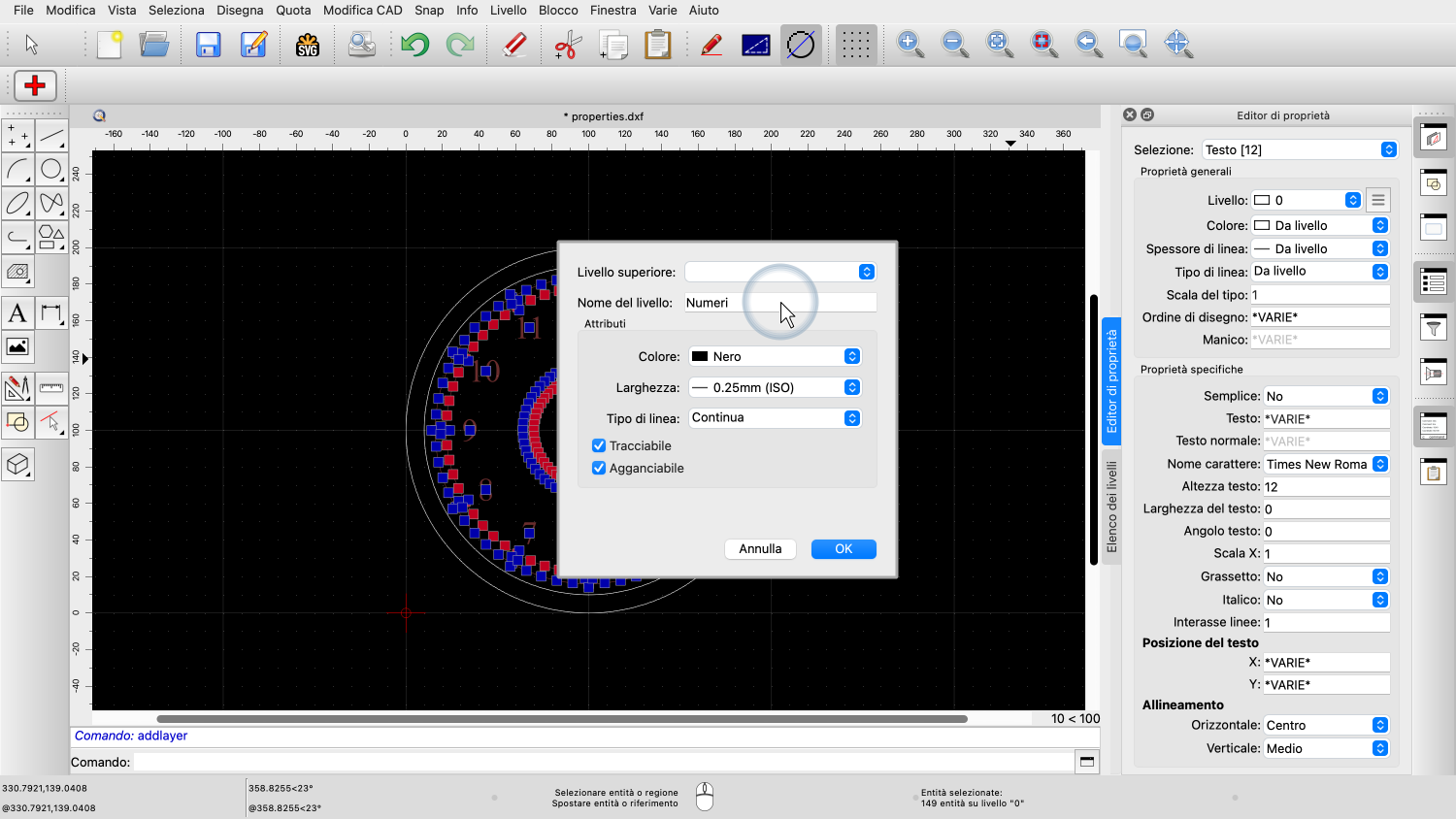 Quando si riorganizza un disegno con i livelli, l'editor delle proprietà è uno dei tanti strumenti che ci possono aiutare.