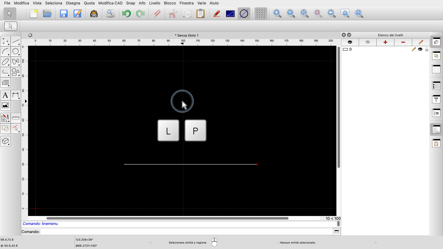 Per avviare lo strumento linea, si può premere prima il tasto "L" e poi il tasto "I".