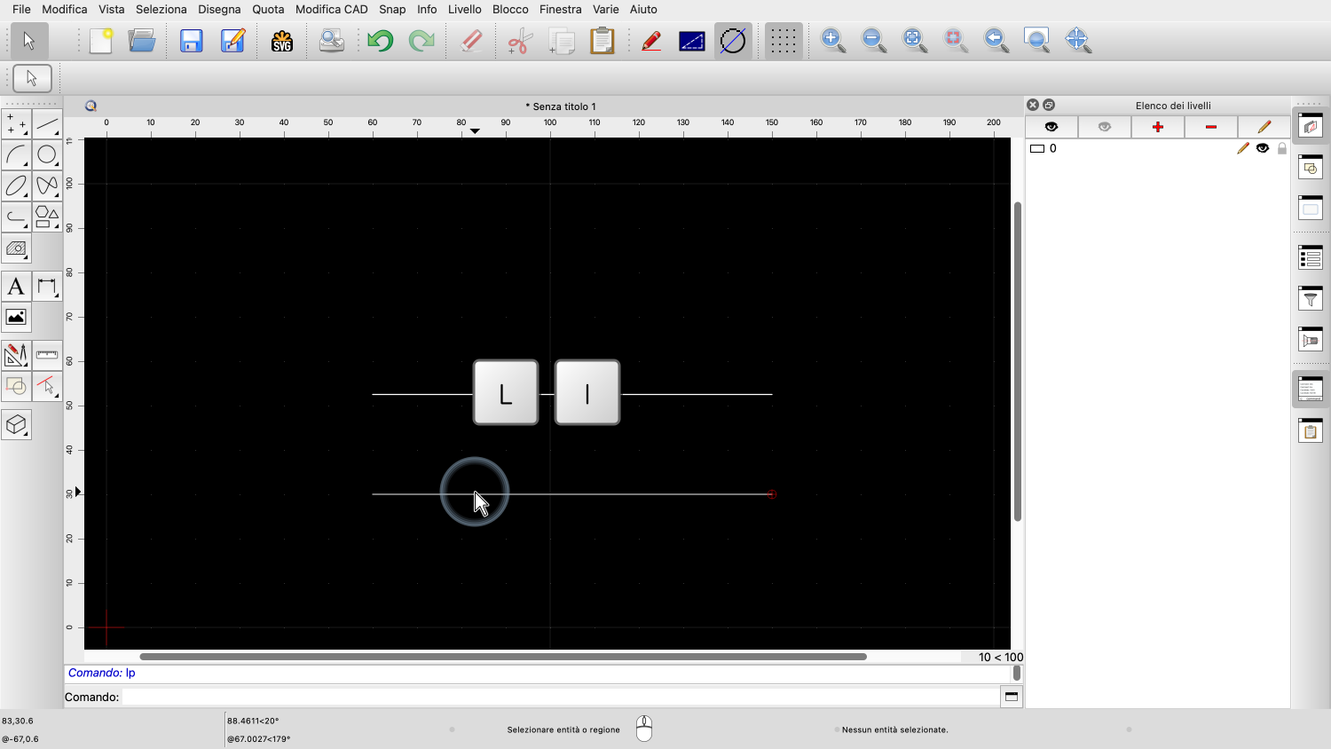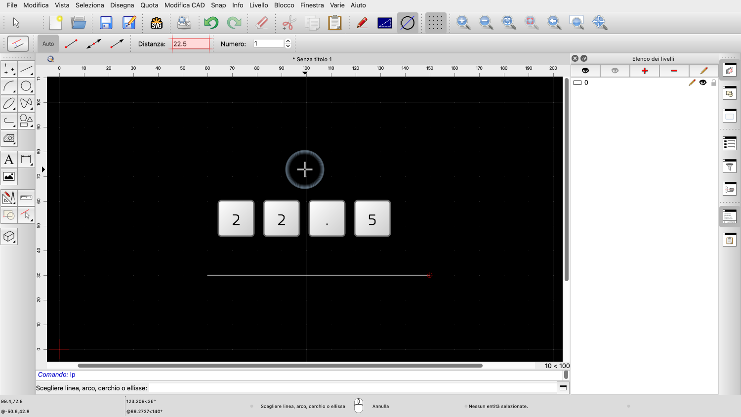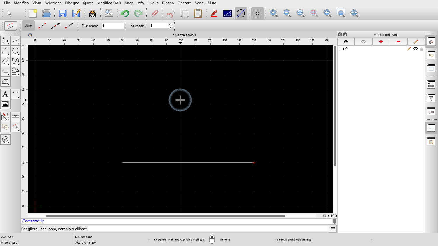 Vediamo di nuovo lo strumento linea, che di solito è uno degli strumenti più utilizzati in QCAD.
