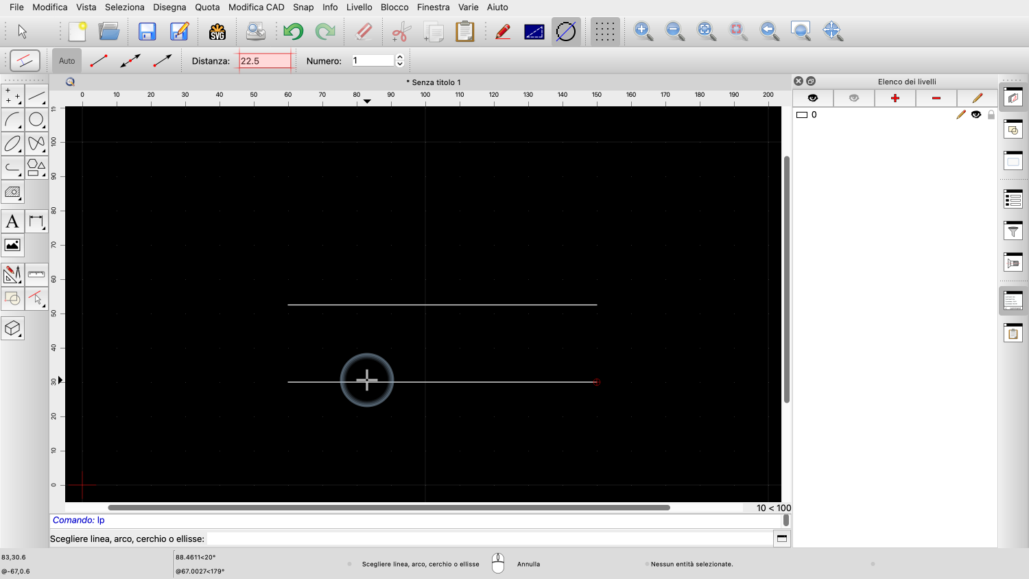 Vogliamo creare una linea parallela con una distanza di 22,5 unità di disegno.