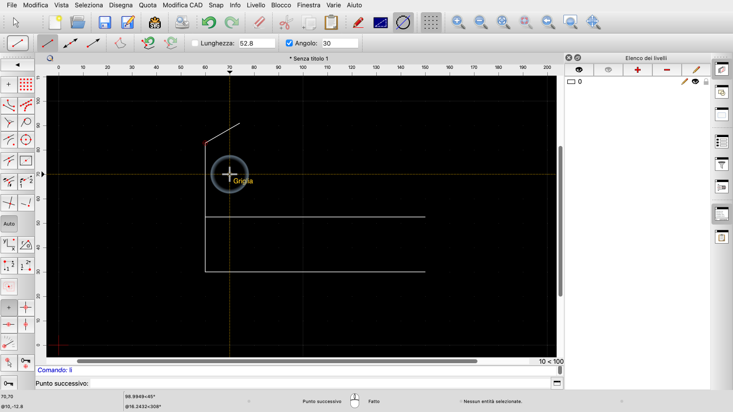 Fissato l'angolo, possiamo ora definire la lunghezza della linea con il mouse.